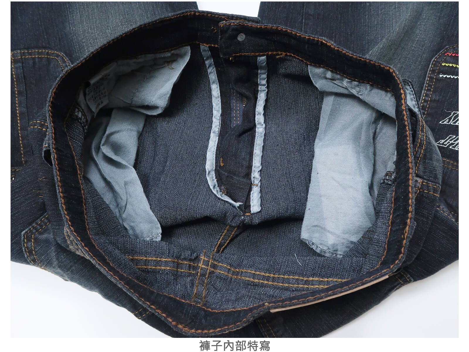 腰圍有皮帶環(褲耳),褲檔有拉鍊。
