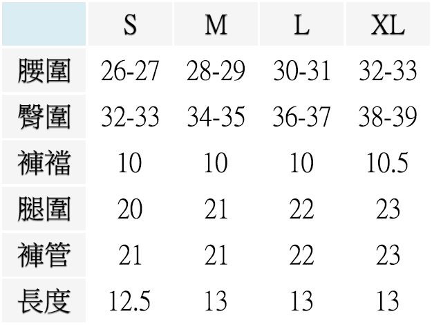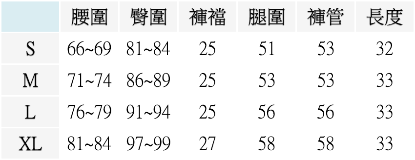 ▍[cm] 公分 尺寸表 Size Chart