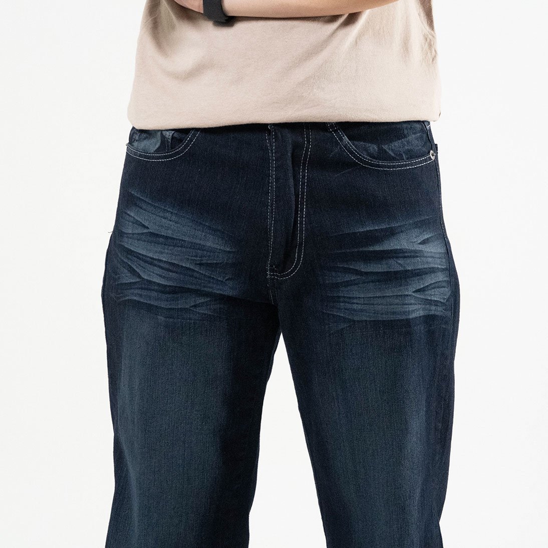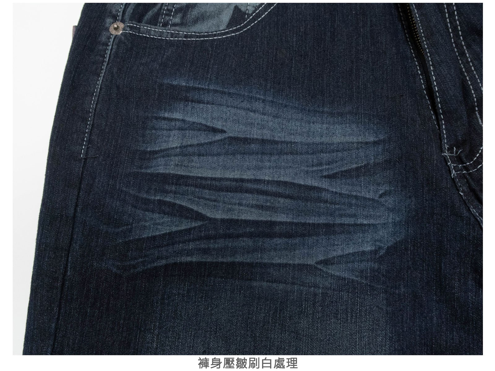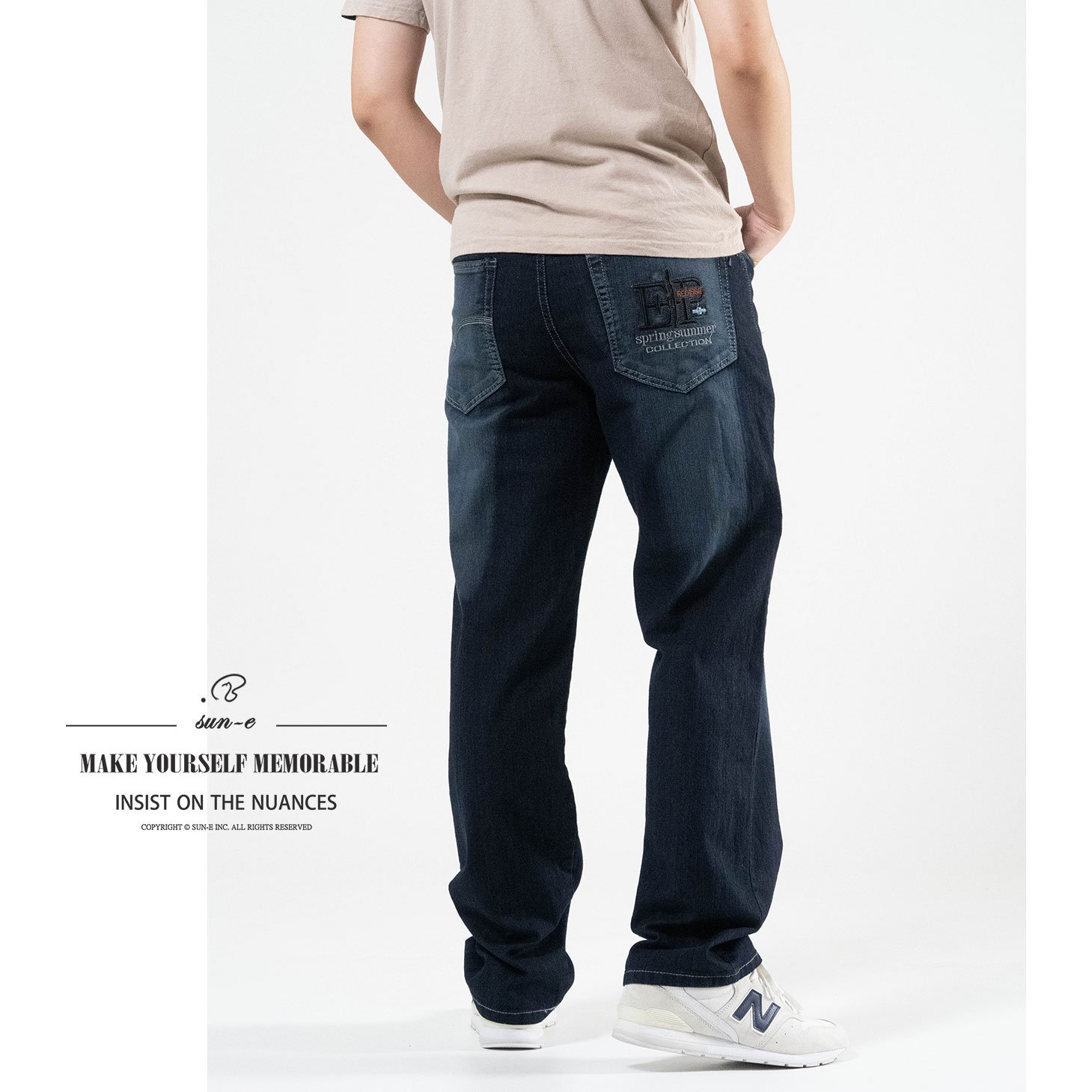 sun-e中直筒牛仔褲、丹寧、壓皺刷白牛仔長褲、直筒褲、英文字車繡後口袋、Men’s Regular Fit Jeans、Denim、Embroidered Pockets (321-8202-21)深牛仔 L XL 2L 3L 4L 5L (腰圍:30~41英吋/76~104公分) 男 [實體店面保障]