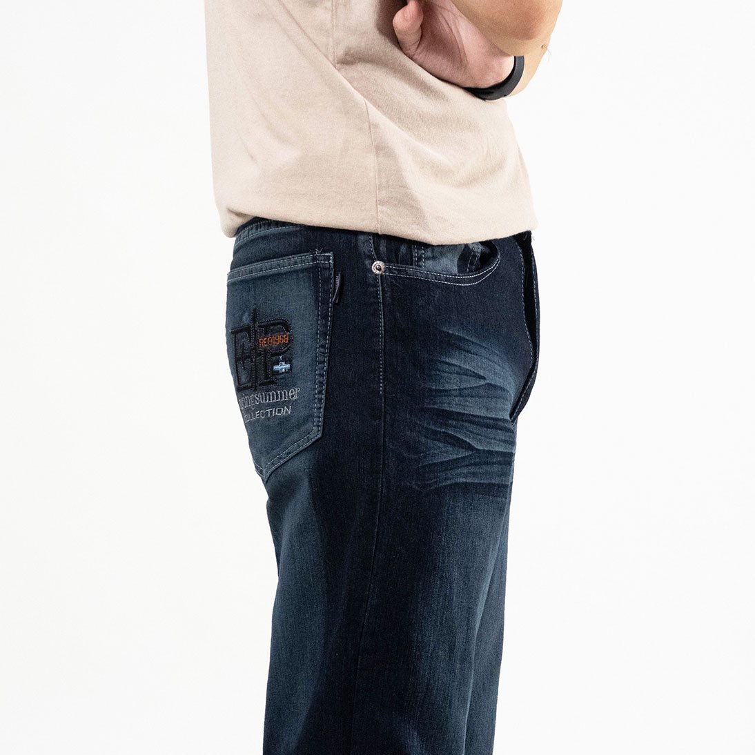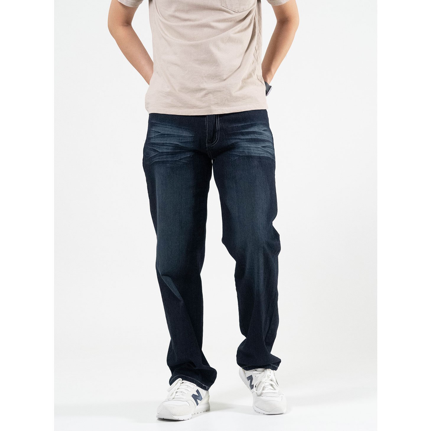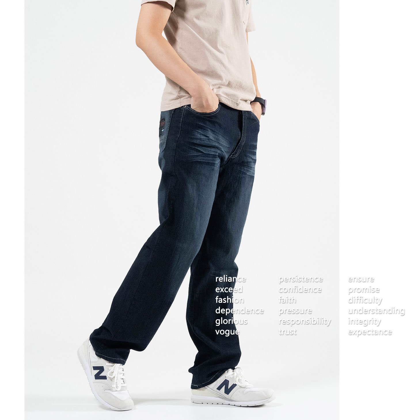 sun-e中直筒牛仔褲、丹寧、壓皺刷白牛仔長褲、直筒褲、英文字車繡後口袋、Men’s Regular Fit Jeans、Denim、Embroidered Pockets (321-8202-21)深牛仔 L XL 2L 3L 4L 5L (腰圍:30~41英吋/76~104公分) 男 [實體店面保障]