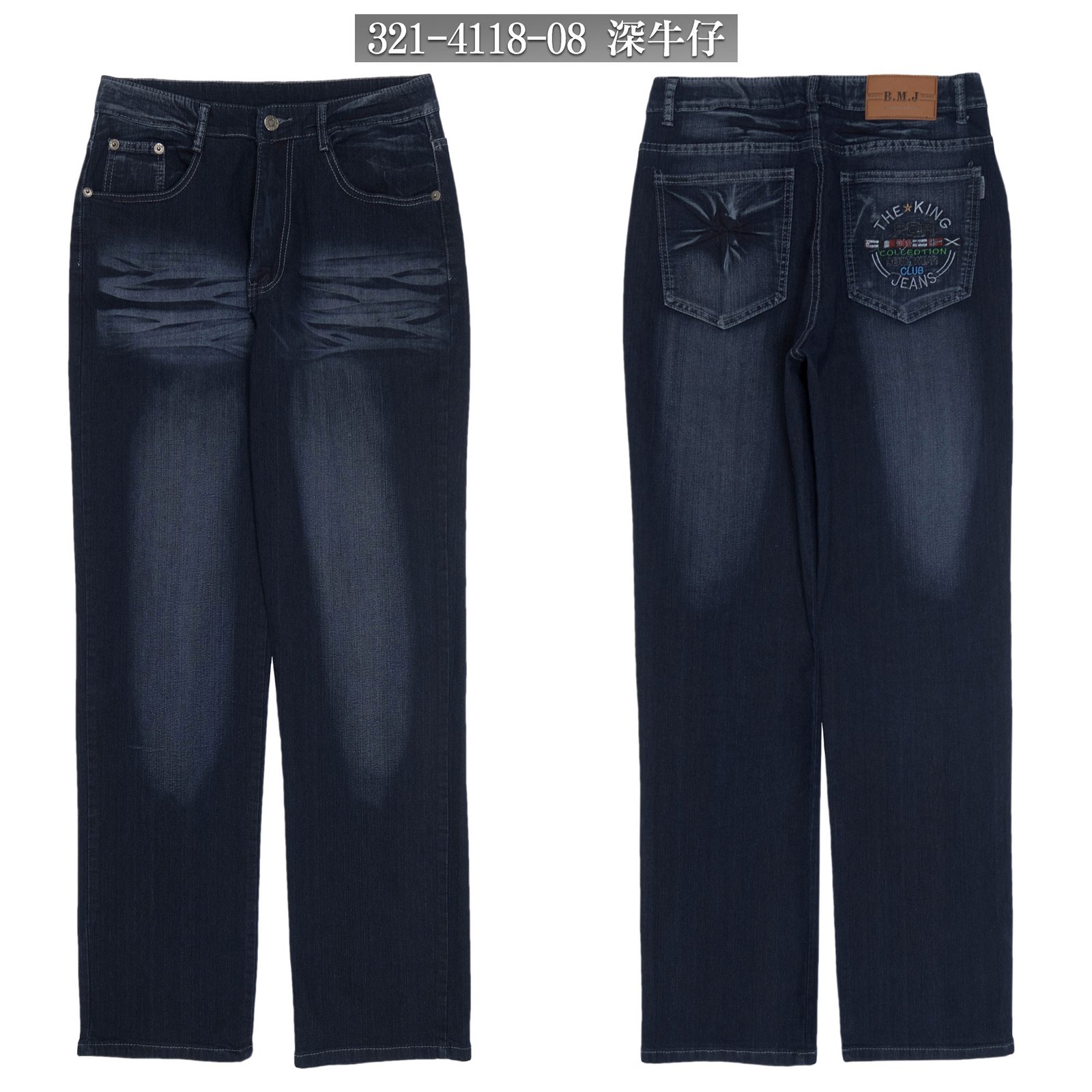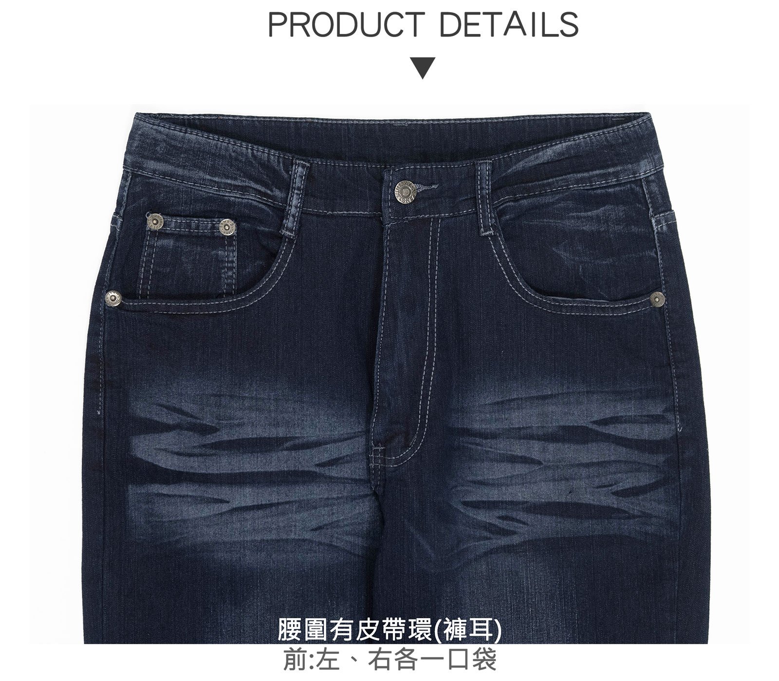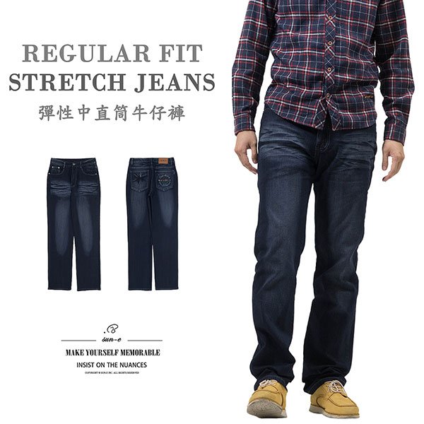 sun-e中直筒牛仔褲、彈性牛仔長褲、刷白牛仔褲、直筒褲、車繡後口袋刷紋丹寧、Regular Fit Stretch Jeans、Denim Pants、Embroidered Pockets (321-4118-08)深牛仔 L XL 2L 3L 4L 5L (腰圍:30~41英吋 / 76~104公分) 男 [實體店面保障]