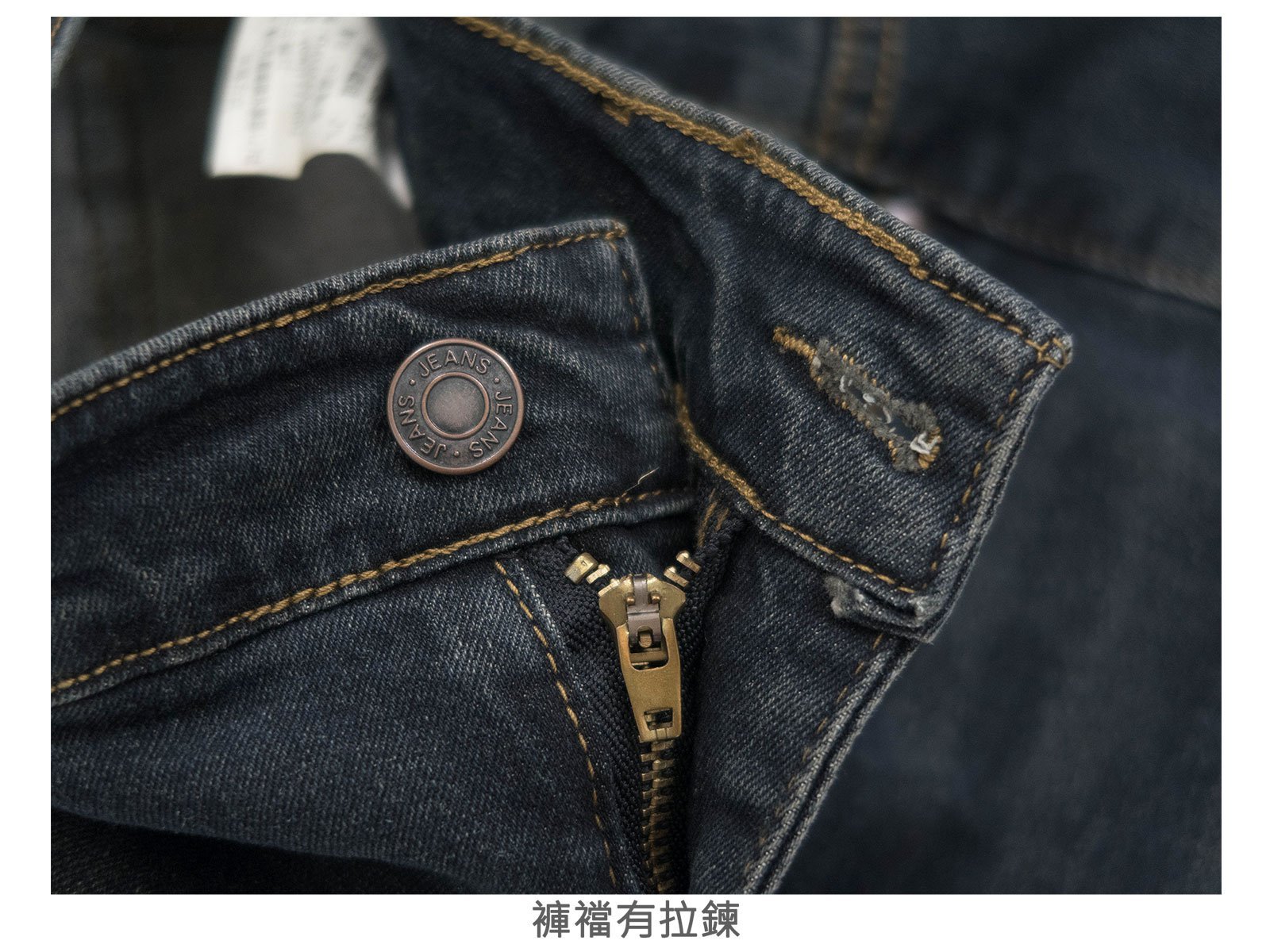 腰圍有皮帶環(褲耳)、褲檔有拉鍊。