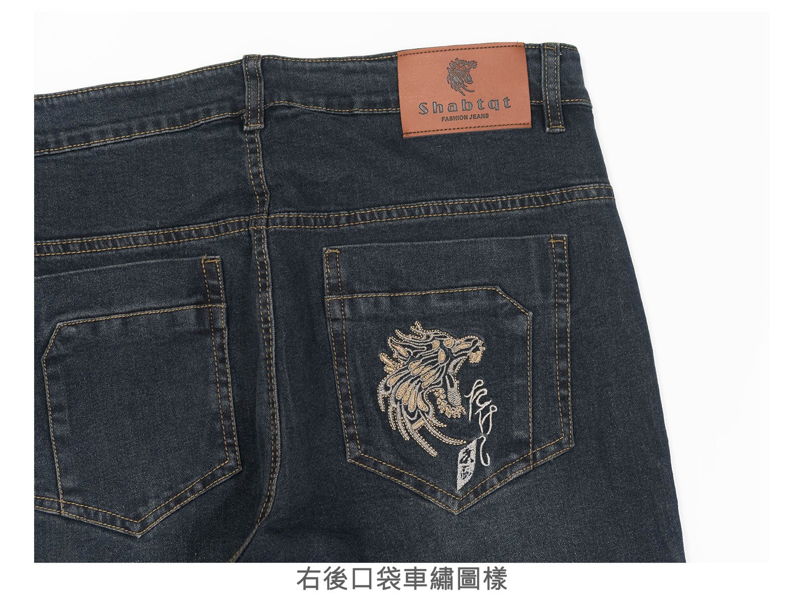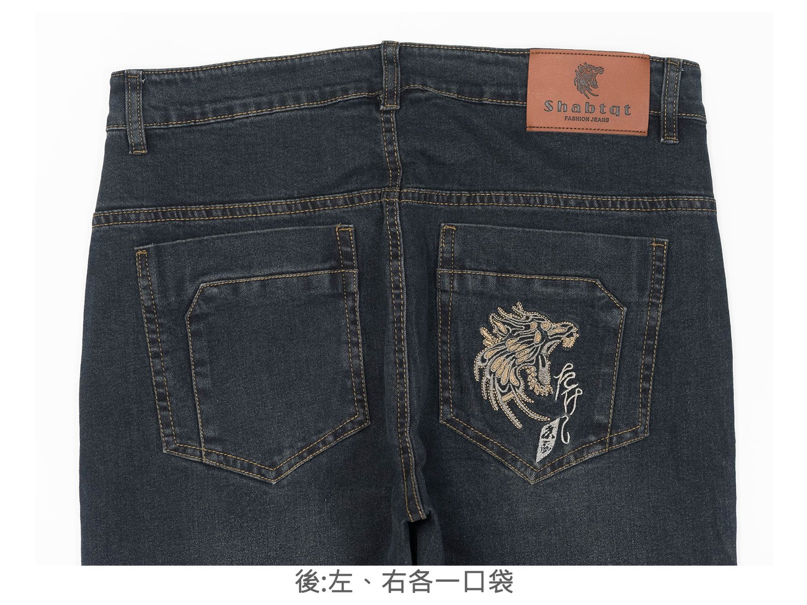 後:左、右各一口袋,右後口袋車繡圖樣。
