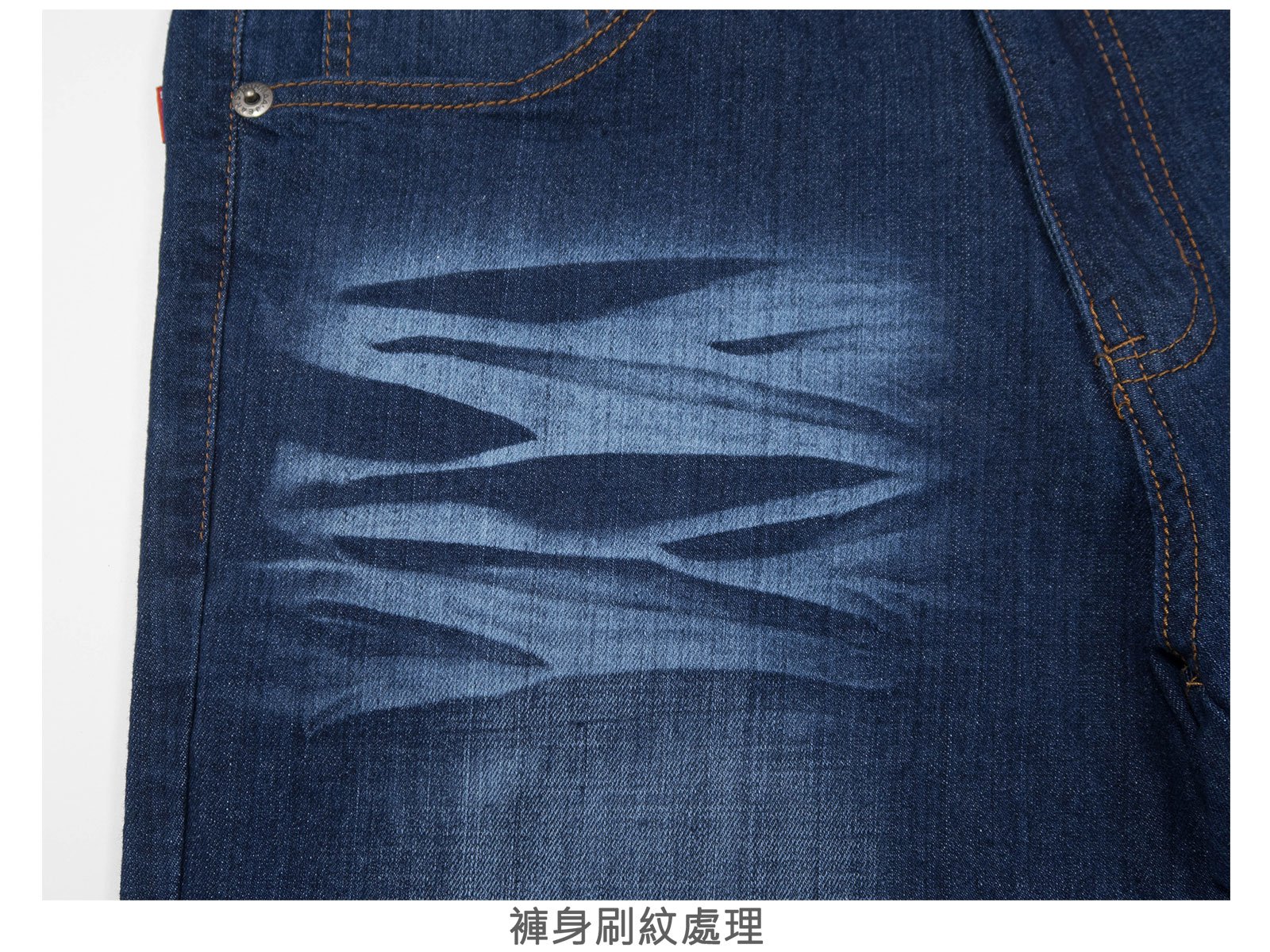 褲身刷白、刷紋處理,伸縮有彈性。