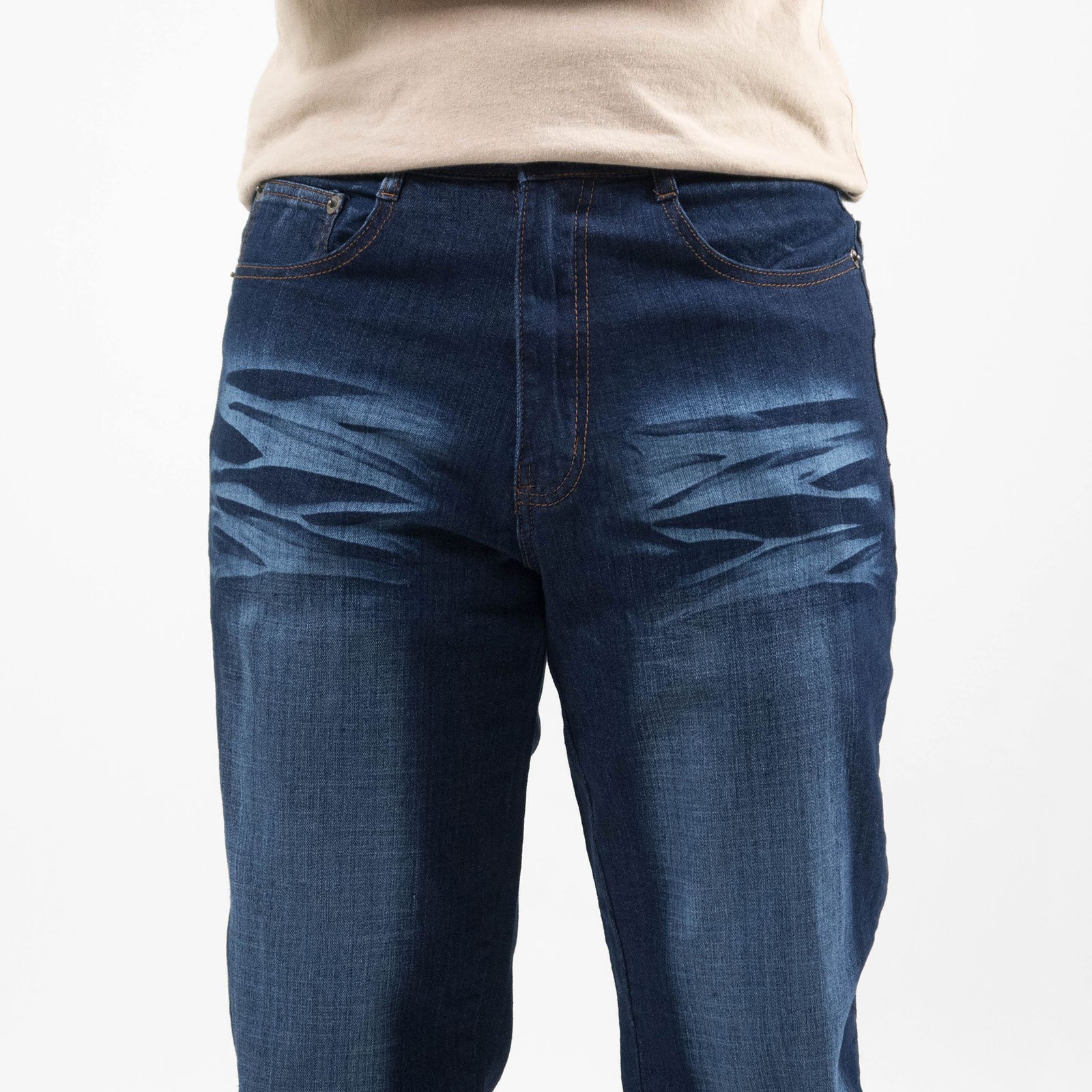 sun-e中直筒牛仔褲、彈性牛仔長褲、刷白牛仔褲、車繡後口袋刷紋丹寧、Regular Fit Stretch Jeans、Denim Pants、Embroidered Pockets (321-8207-08)牛仔色 L XL 2L 3L 4L 5L (腰圍:30~41英吋 / 76~104公分) 男 [實體店面保障]
