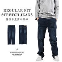 sun-e中直筒牛仔褲、彈性牛仔長褲、素面牛仔褲、直筒褲、車繡後口袋丹寧、Regular Fit Stretch Jeans、Denim Pants、Embroidered Pockets (337-2130-31)牛仔色 M L XL 2L 3L 4L 5L (腰圍:28~41英吋 / 71~104公分) 男 [實體店面保障]