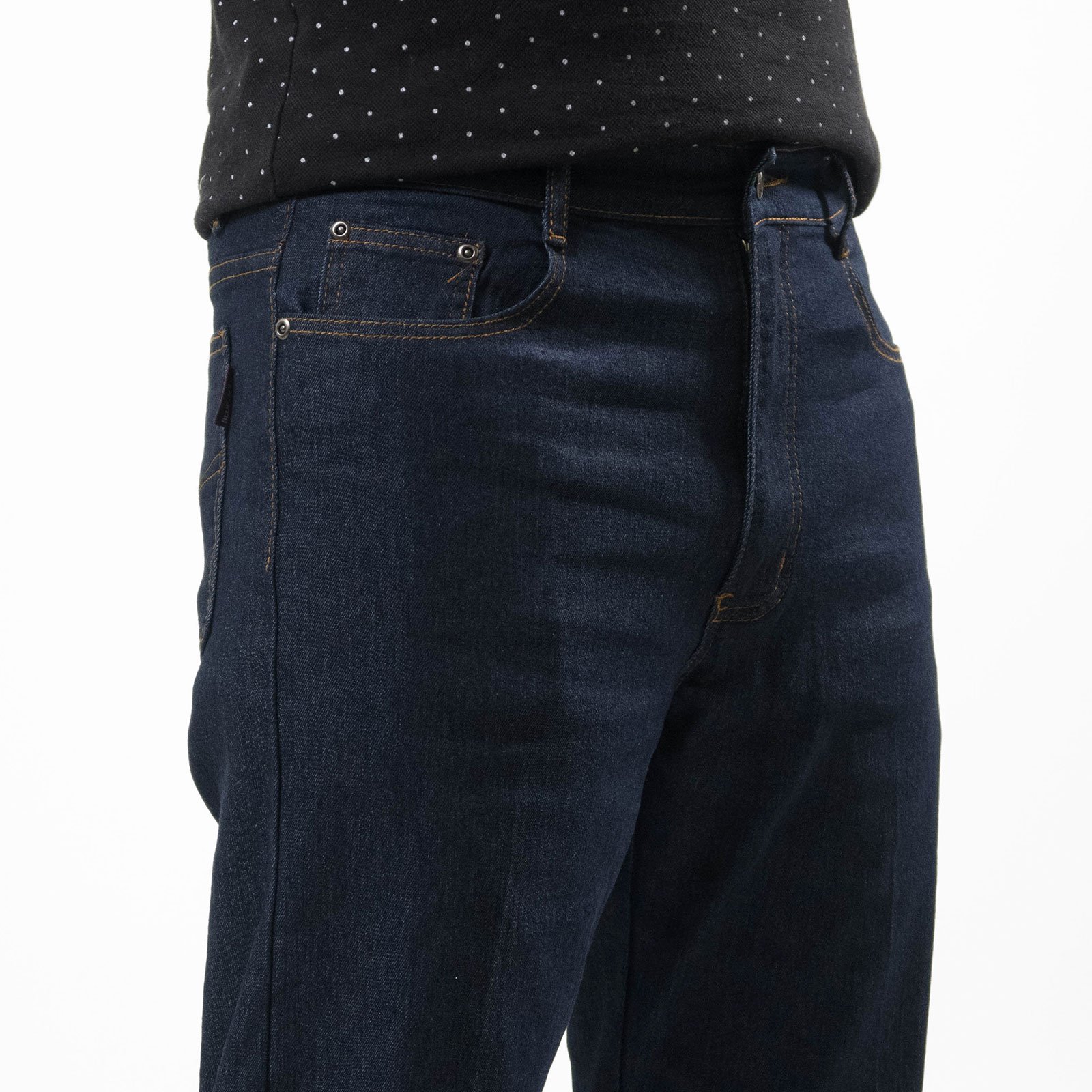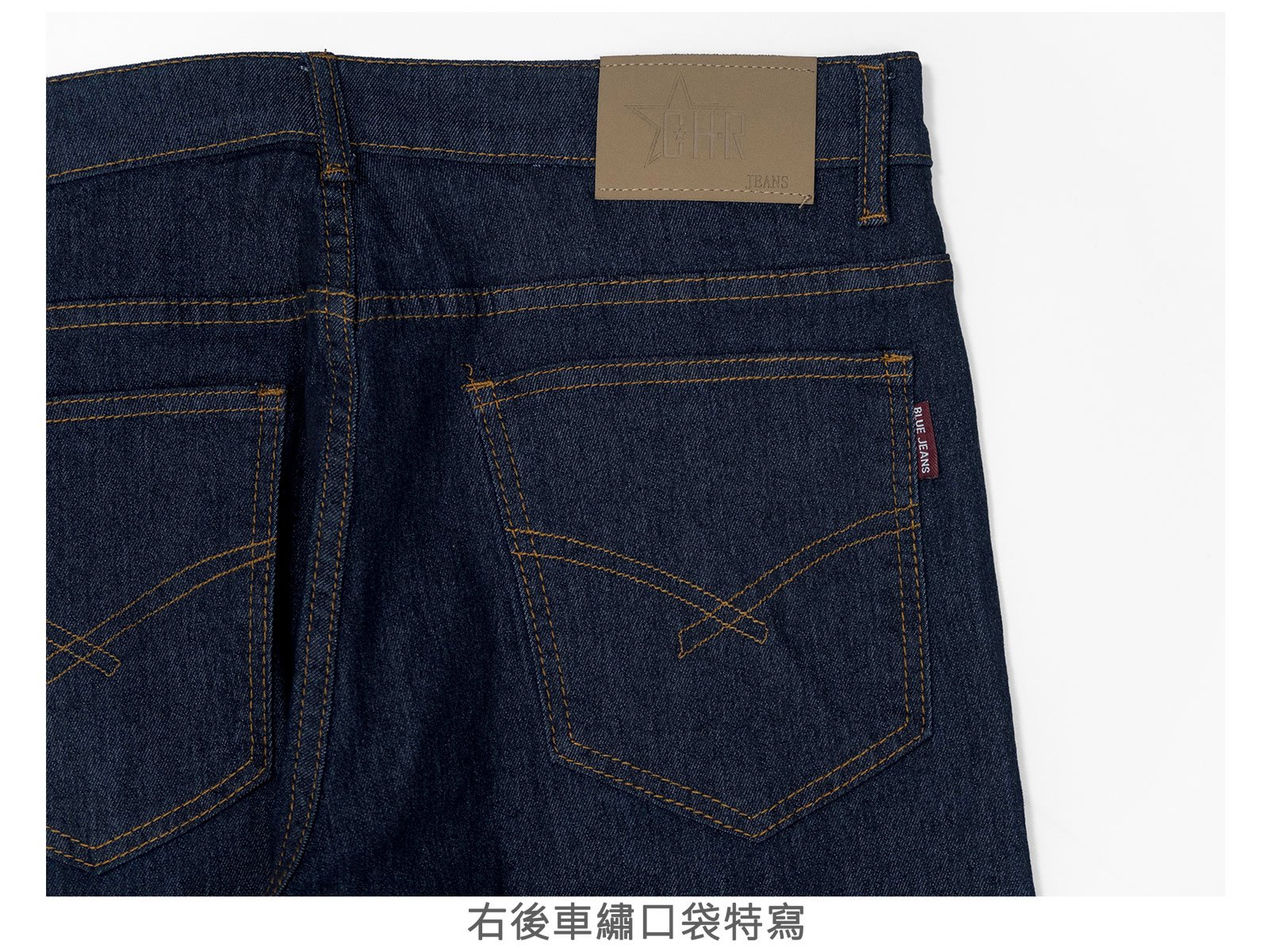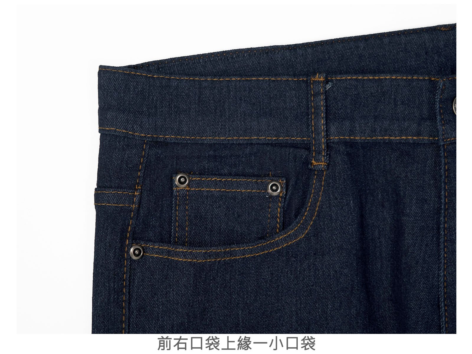 中直筒彈性牛仔長褲,車繡後口袋,