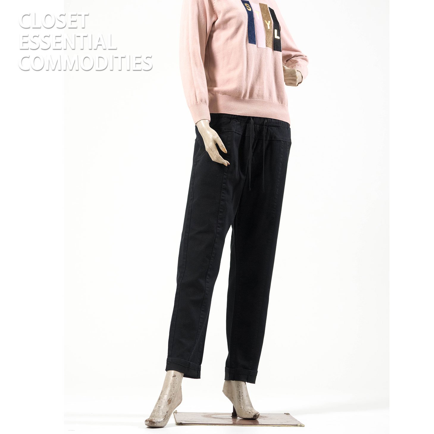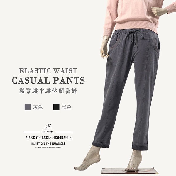 sun-e中腰休閒褲、彈力顯瘦長褲、全腰圍鬆緊帶修身長褲、黑色長褲、Mid-rise Casual Pants、Elastic Waist Pants (002-0066-21)黑色、(002-1067-22)灰色 M L (腰圍:26~36英吋/66~91公分) 女 [實體店面保障]