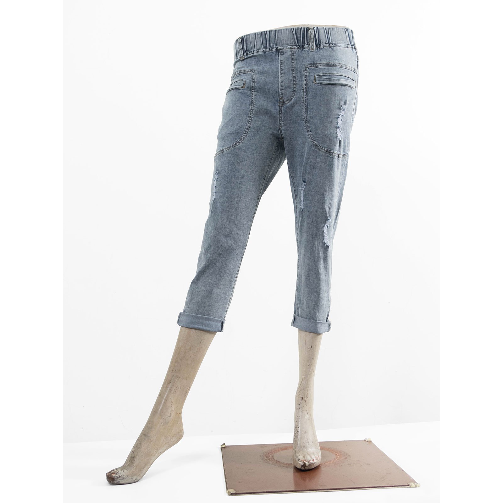 sun-e中腰牛仔七分褲、鬆緊腰七分牛仔褲、顯瘦彈性丹寧七分褲、褲管割破牛仔短褲、Elastic Waistband Cropped Jeans、Denim Cropped Pants、Denim Jeans、Denim Pants、Stretch Jeans (010-5570-32)淺牛仔 M L XL 2L 3L (腰圍:26~35英吋 / 66~89公分) 女 [實體店面保障]