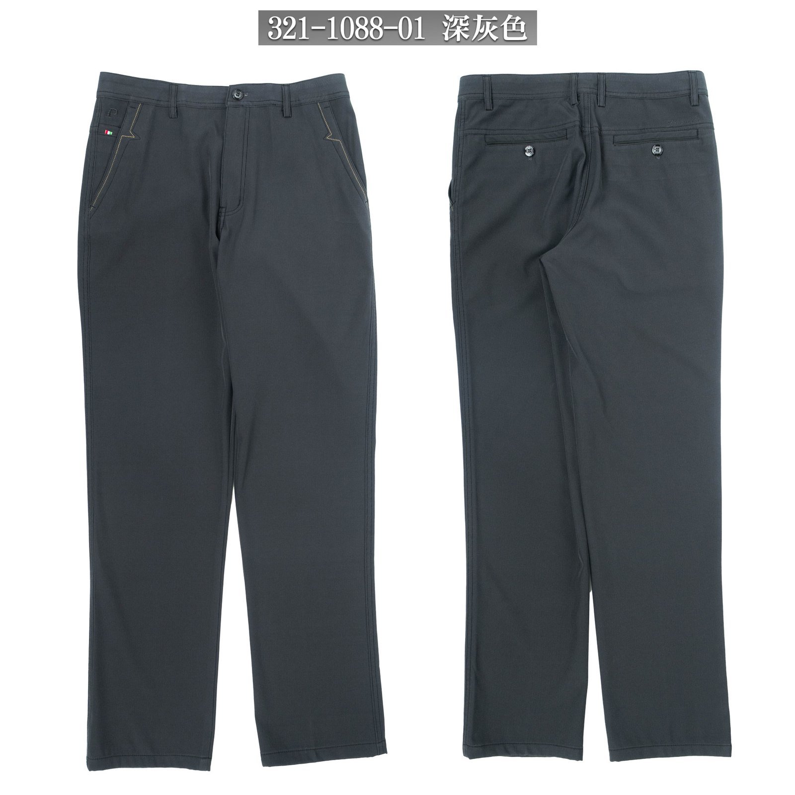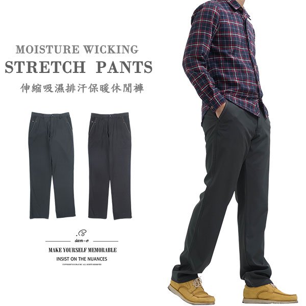 sun-e伸縮吸濕排汗保暖休閒褲 彈力布料休閒長褲 草寫英文車繡後口袋長褲 Moisture Wicking Casual Pants Stretch Pants Regular Fit Pants Embroidered Pockets (321-1088-01)深灰色、(321-1088-02) 黑色 腰圍:30~39英吋 (76~99公分) 男 [實體店面保障]