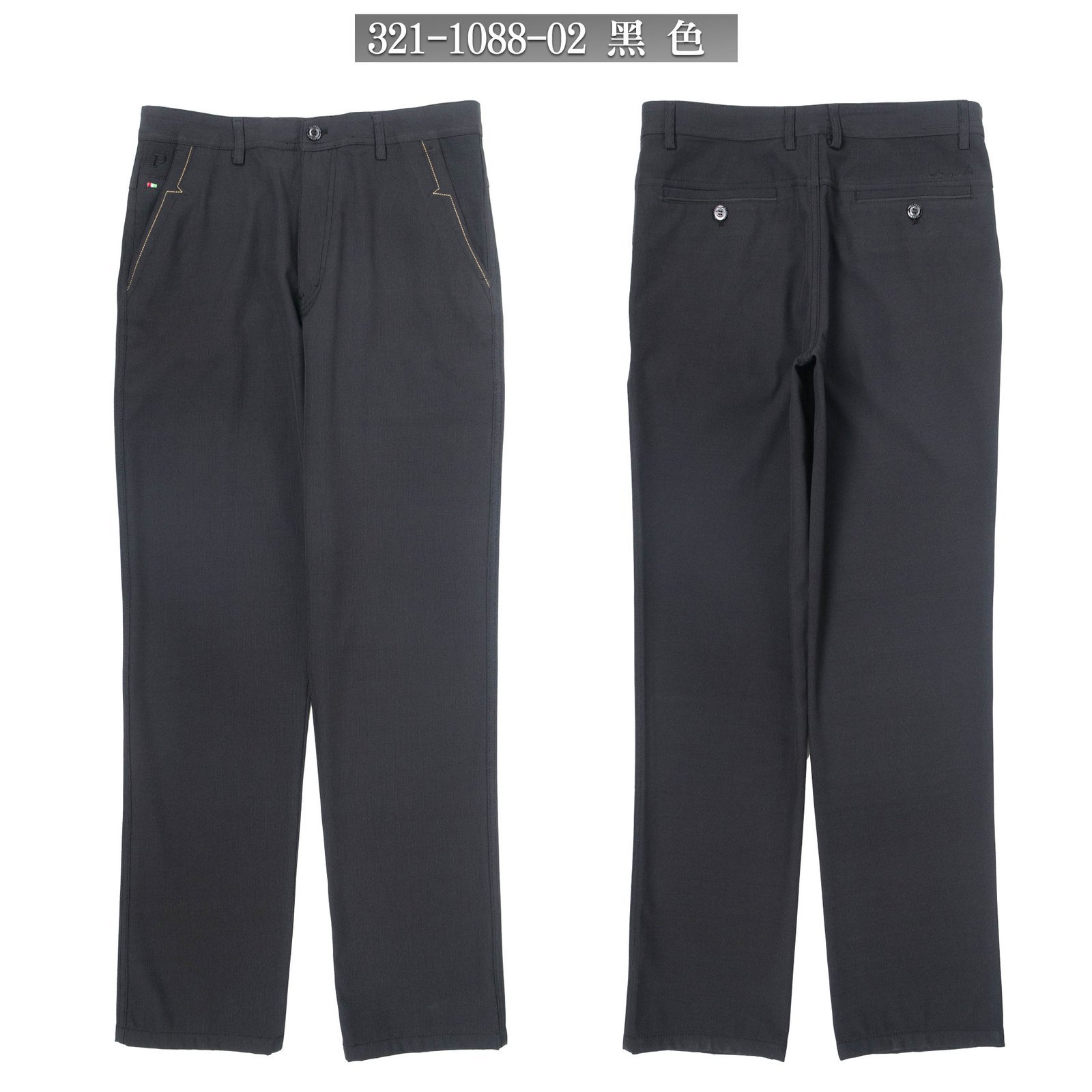伸縮吸濕排汗保暖休閒褲 彈力布料休閒長褲 草寫英文車繡後口袋長褲 Moisture Wicking Casual Pants Stretch Pants Regular Fit Pants Embroidered Pockets (321-1088-01)深灰色、(321-1088-02) 黑色 腰圍:30~39英吋 (76~99公分) 男 [實體店面保障]sun-e