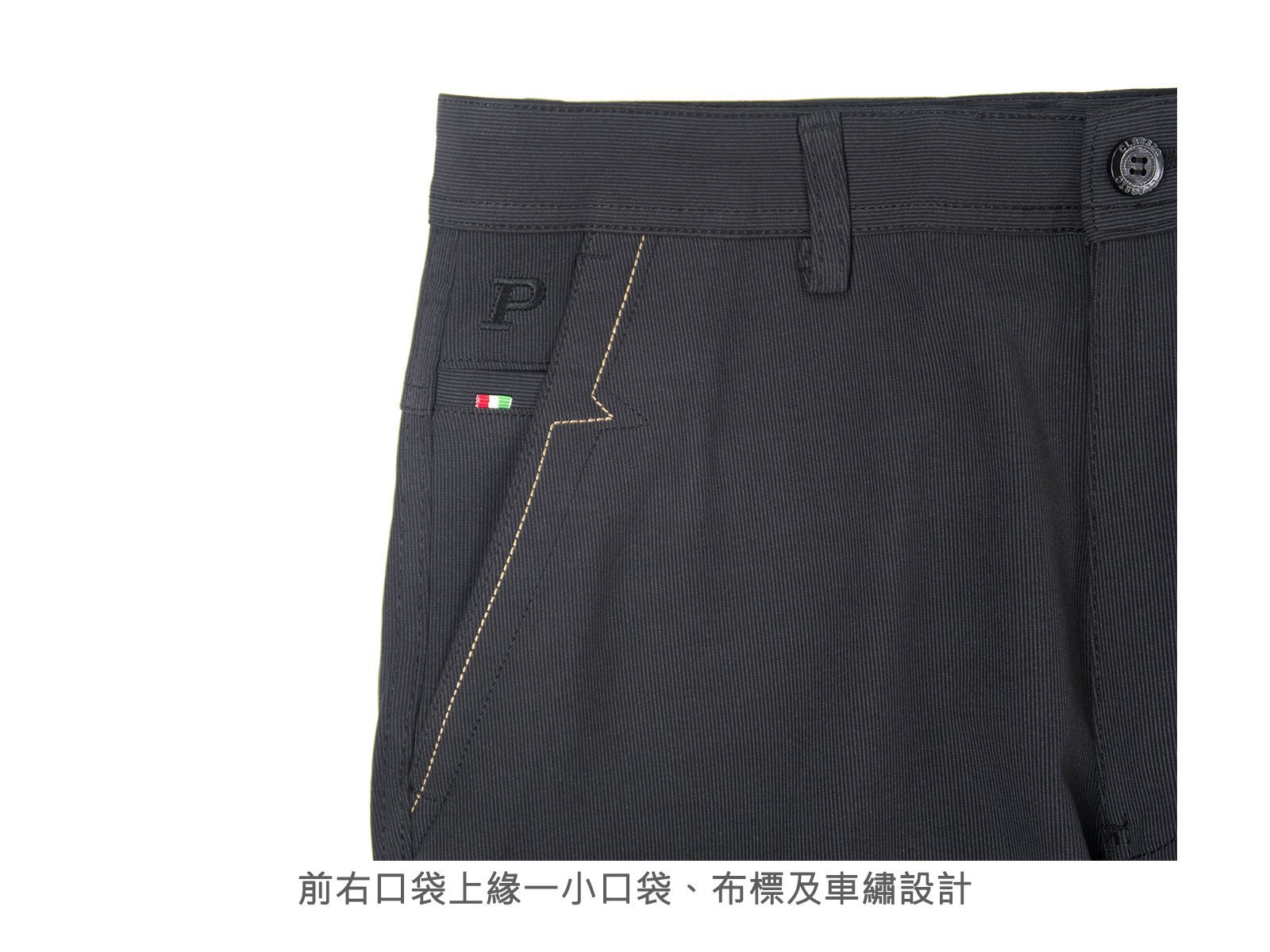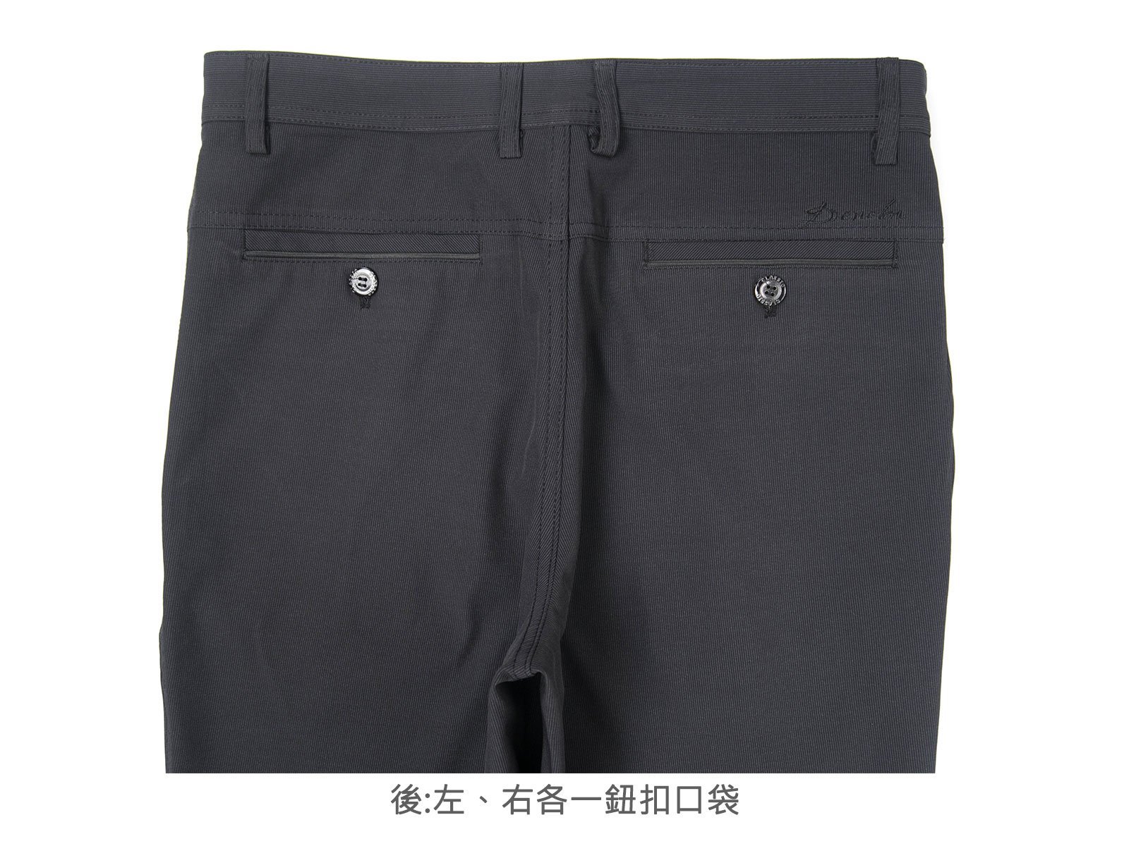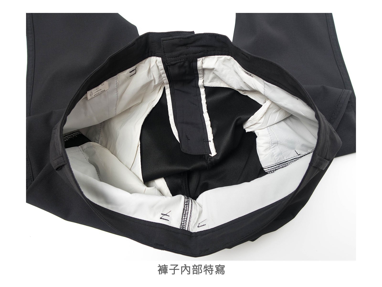 腰圍有皮帶環(褲耳)、褲檔使用拉鍊。