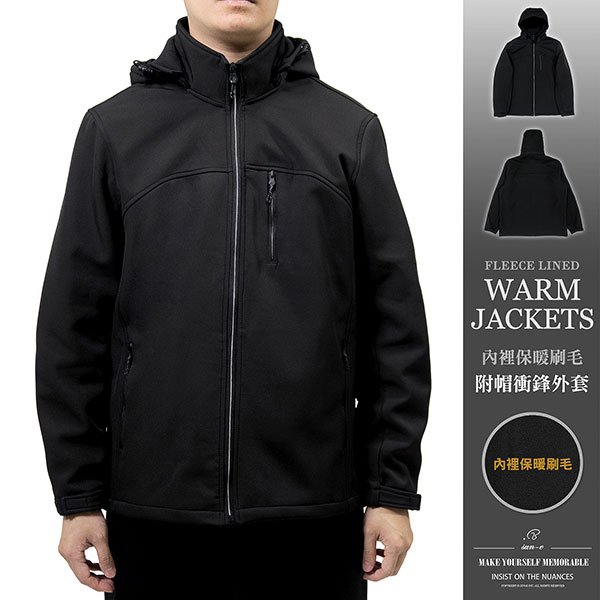 sun-e保暖內刷毛衝鋒外套、防風保暖夾克外套、騎士外套、附帽可拆休閒外套、Fleece Lined Warm Jackets、Riding Jackets、Windproof Jackets、Casual Jackets、Motorcycle Jackets (312-8169-21)黑色 XL 2L (胸圍:48~50英吋/122~127公分) 男 [實體店面保障]