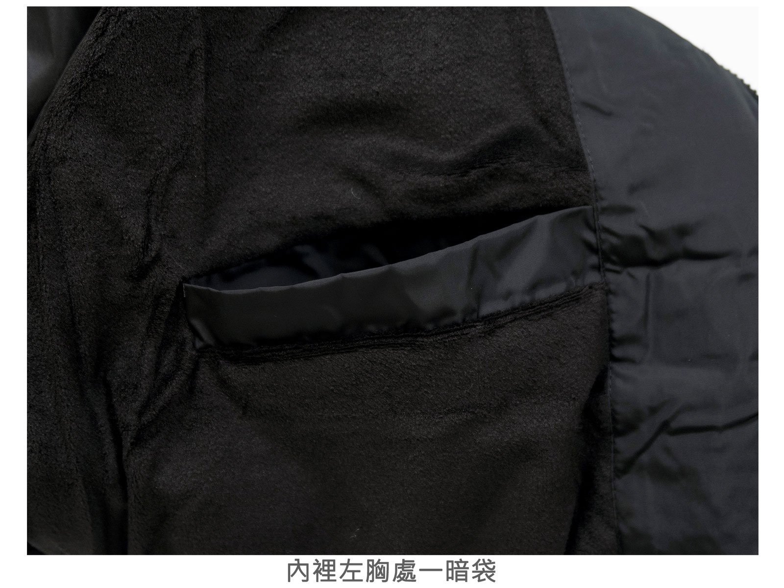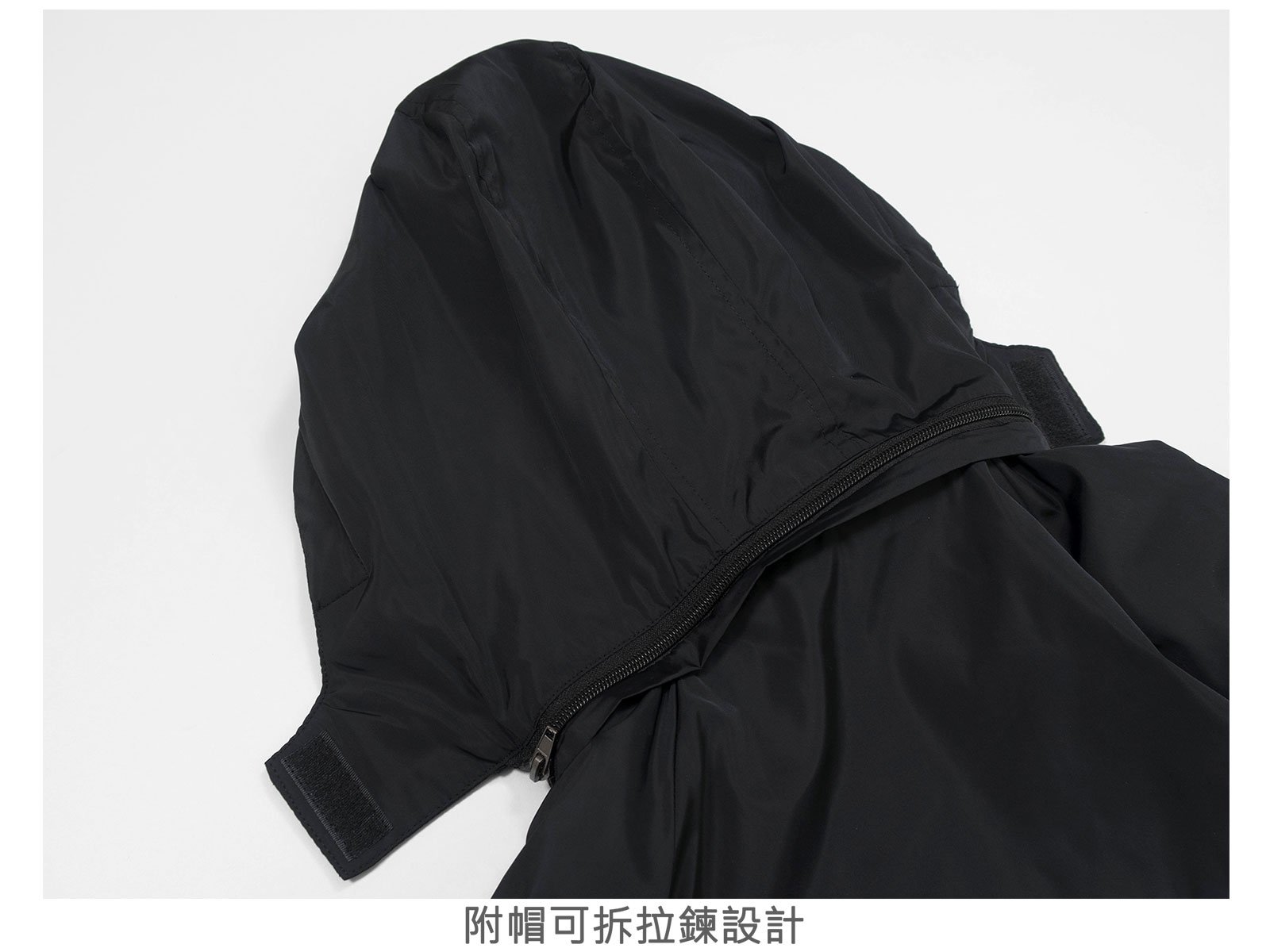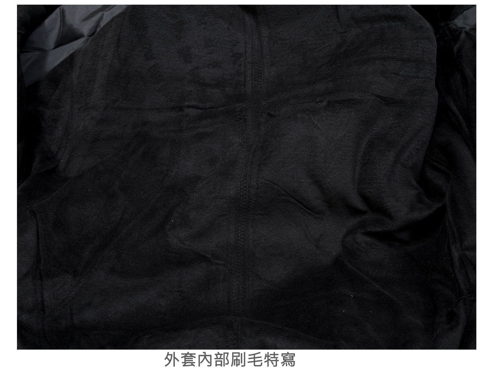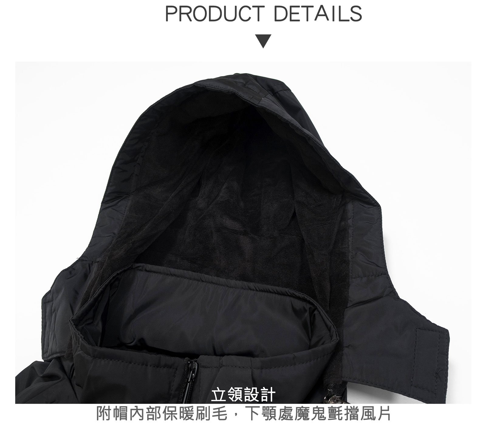 附帽內部保暖刷毛,下顎處魔鬼氈擋風片。