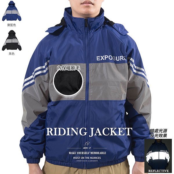 保暖刷毛外套 夜間反光騎士外套 抗紫外線防曬外套 防潑水連帽外套 防風保暖夾克外套 夜騎外套 休閒外套 抗UV機能布料風衣外套 附帽可拆 黑色外套 Fleece Lined Waterproof WindproofWarm Jackets Reflective Jackets Riding Jackets Anti-UV Thin Coat (321-8205-01)寶藍色、(321-8205-02)黑色 L XL 2L (胸圍:49~53英吋/124~135公分) 男 [實體店面保障] sun-e