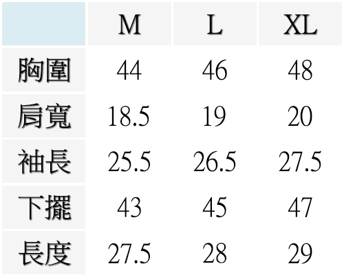 (模特兒身高180體重65公斤,胸圍34英吋,穿著尺寸:XL)