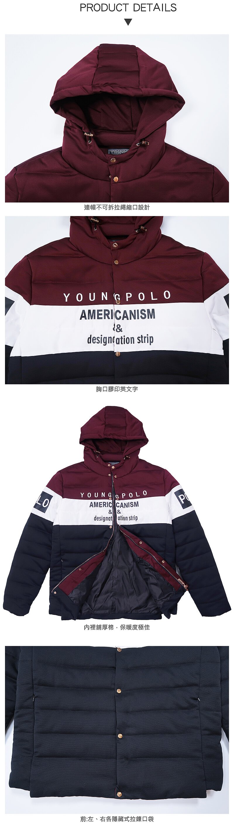 亮眼配色厚舖棉連帽外套,保暖時尚必備商品!