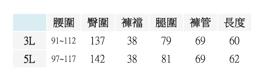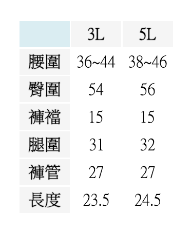 3L (腰圍:36~44英吋), 5L (腰圍:38~46英吋)