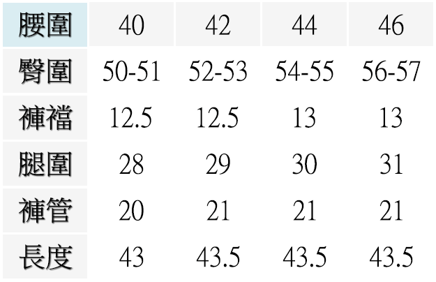 ▍尺寸表 Size Chart