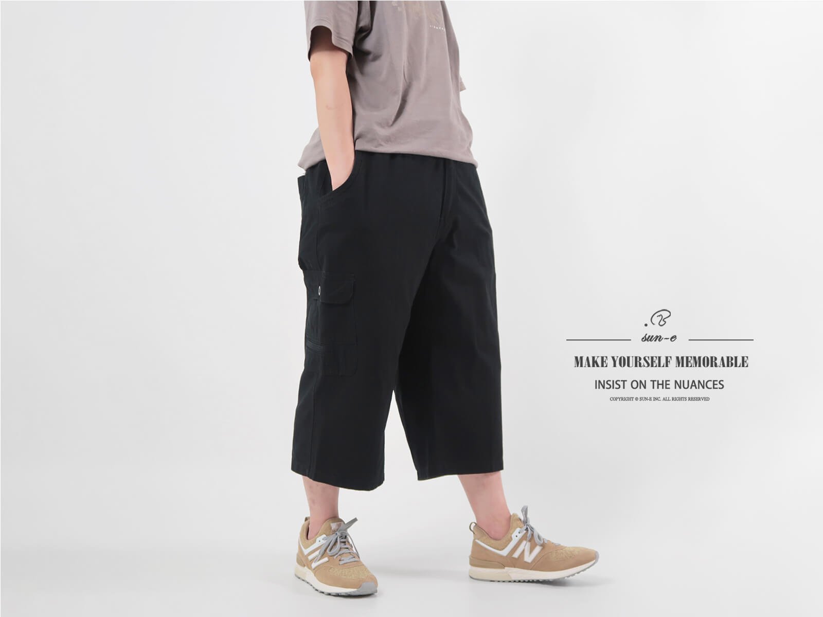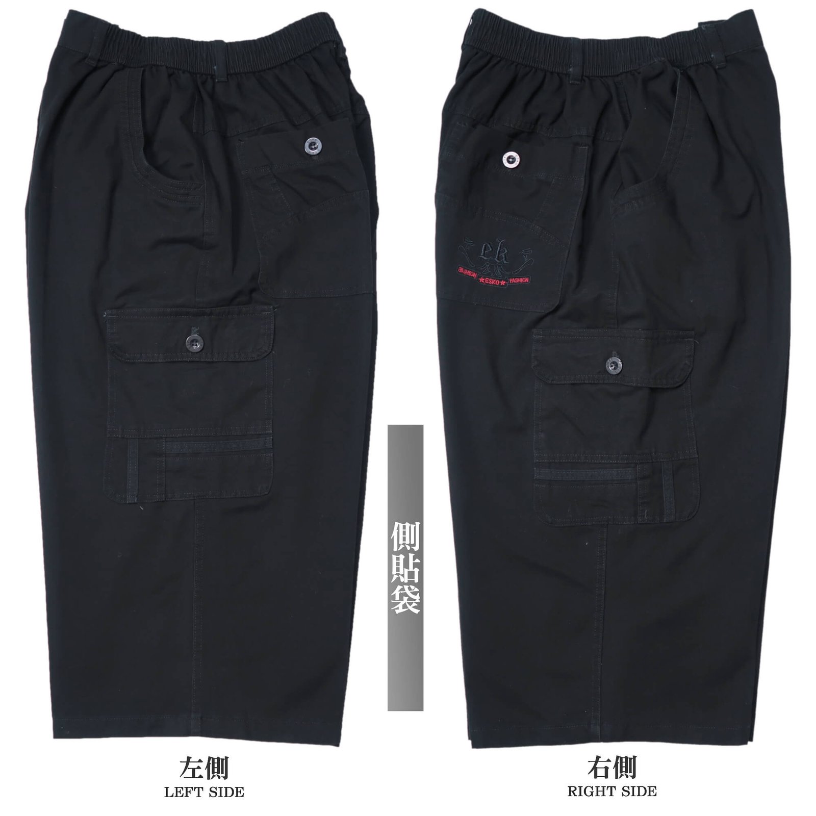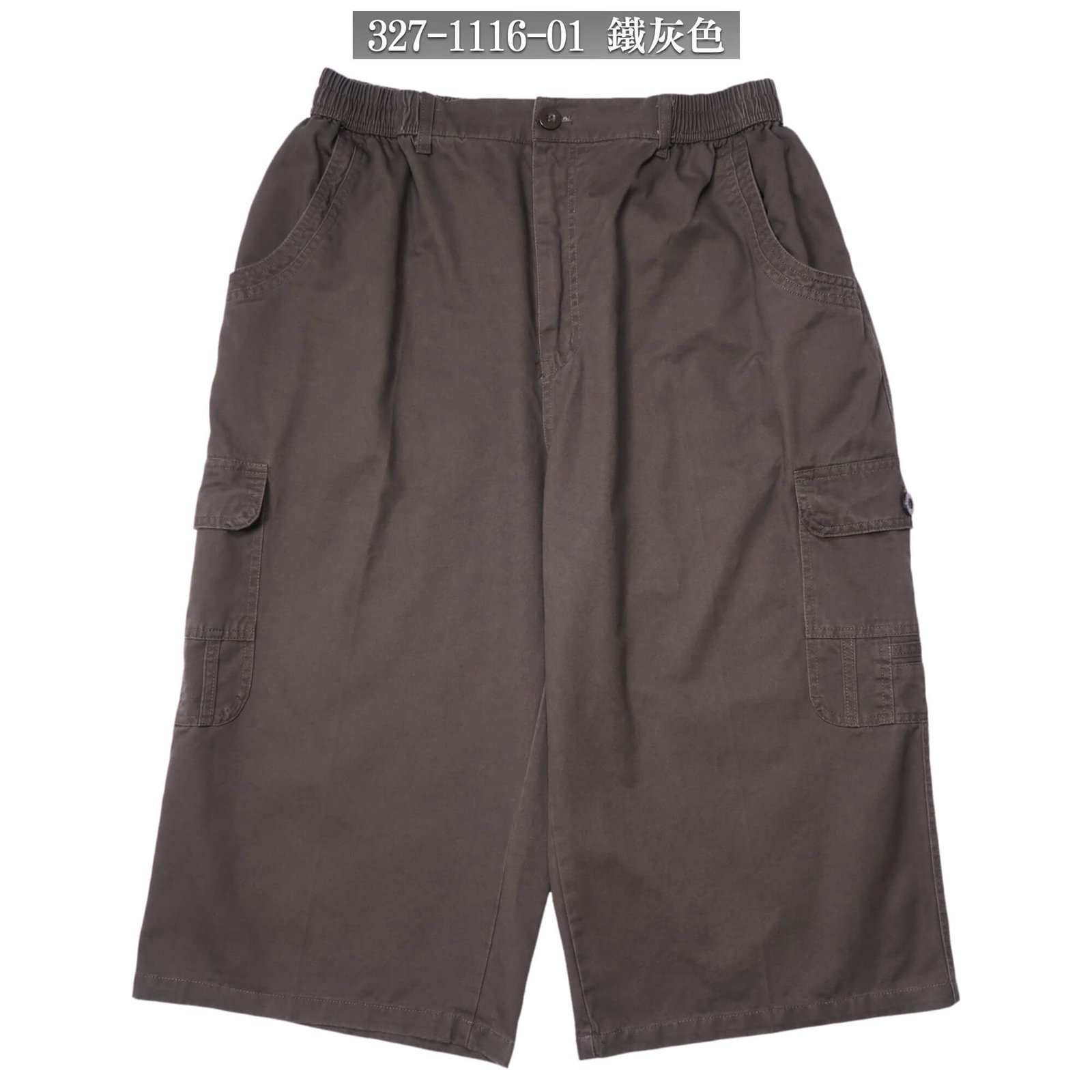 sun-e加大尺碼八分褲、精工前染八分工作褲、純棉休閒褲、多口袋工作短褲、側貼袋休閒短褲、腰圍鬆緊帶、大尺碼短褲、工裝褲、口袋褲、Big And Tall、Cargo Shorts、Mens Cropped Pants、Mens Cargo Pants、Short Pants (327-1116-01)鐵灰色、(327-1116-02)黑色 單一尺寸 F (腰圍:91~122公分 / 36~48英吋) 男 [實體店面保障]