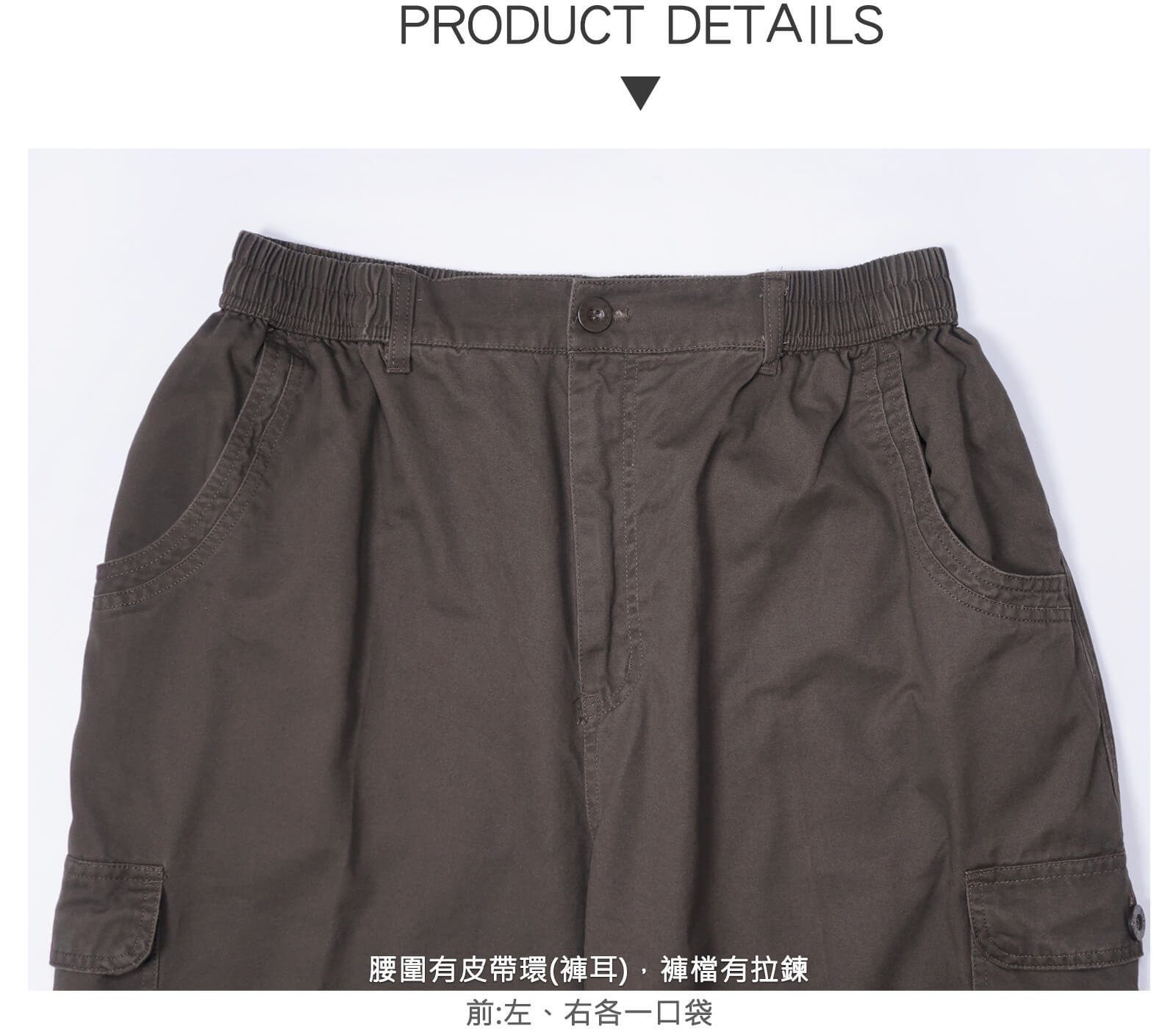 腰圍有皮帶環(褲耳),褲檔有拉鍊。