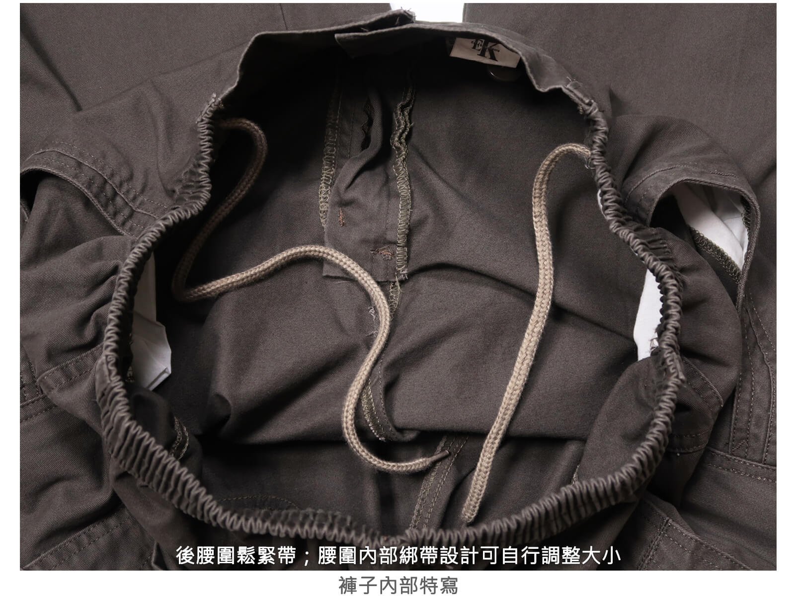 後腰圍鬆緊帶,腰圍內部綁帶設計可自行調整大小。