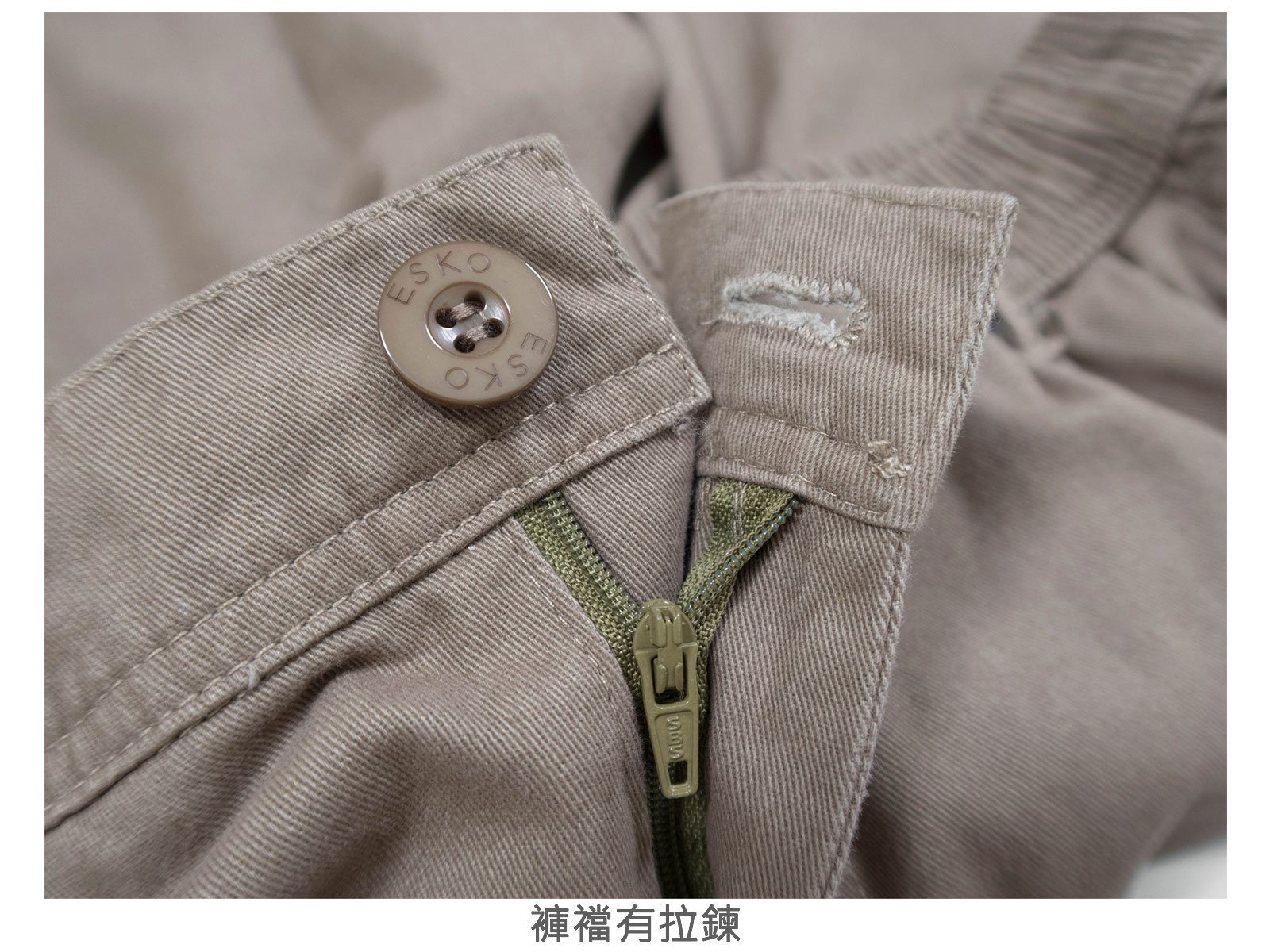 腰圍有皮帶環(褲耳),褲檔有拉鍊。