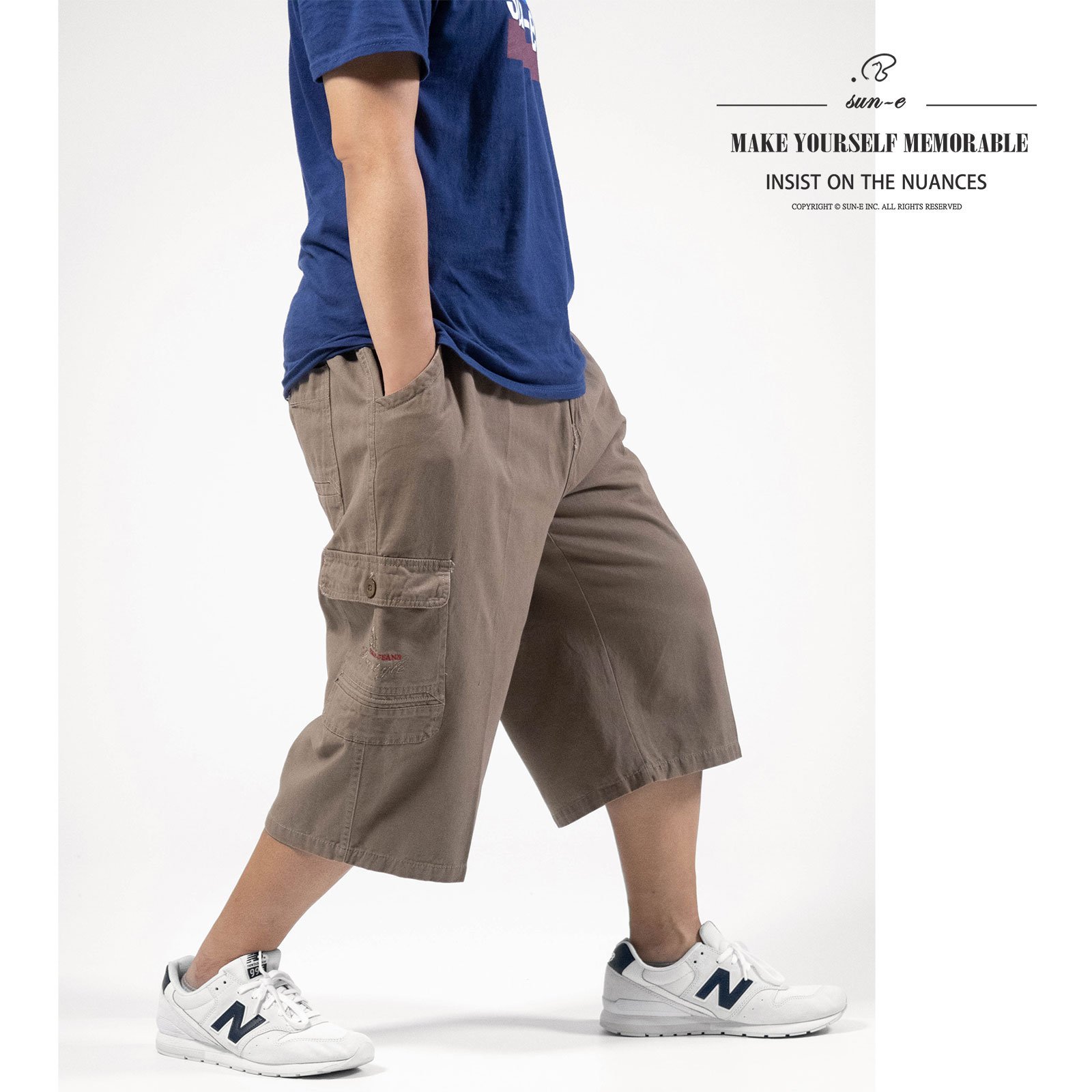 sun-e加大尺碼八分褲、精工前染八分工作褲、純棉側袋褲、休閒短褲、大尺碼男裝、多口袋工作短褲、側貼袋休閒褲、大尺碼短褲、工裝褲、口袋褲、後腰圍鬆緊帶、Big And Tall Cropped Pants、Cargo Pants、Cargo Shorts、Short Pants (327-6120-01)卡其色、(327-6120-02)深藍黑 單一尺寸 F (腰圍:91~122公分 / 36~48英吋) 男 [實體店面保障]