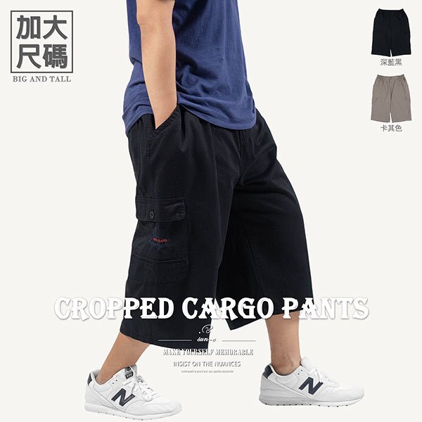 加大尺碼八分褲 精工前染八分工作褲 純棉側袋褲 休閒短褲 大尺碼男裝 多口袋工作短褲 側貼袋休閒褲 大尺碼短褲 工裝褲 口袋褲 後腰圍鬆緊帶 Big And Tall Cropped Pants Cargo Pants Cargo Shorts Short Pants (327-6120-01)卡其色、(327-6120-02)深藍黑 單一尺寸 F (腰圍:91~122公分 / 36~48英吋) 男 [實體店面保障] sun-e