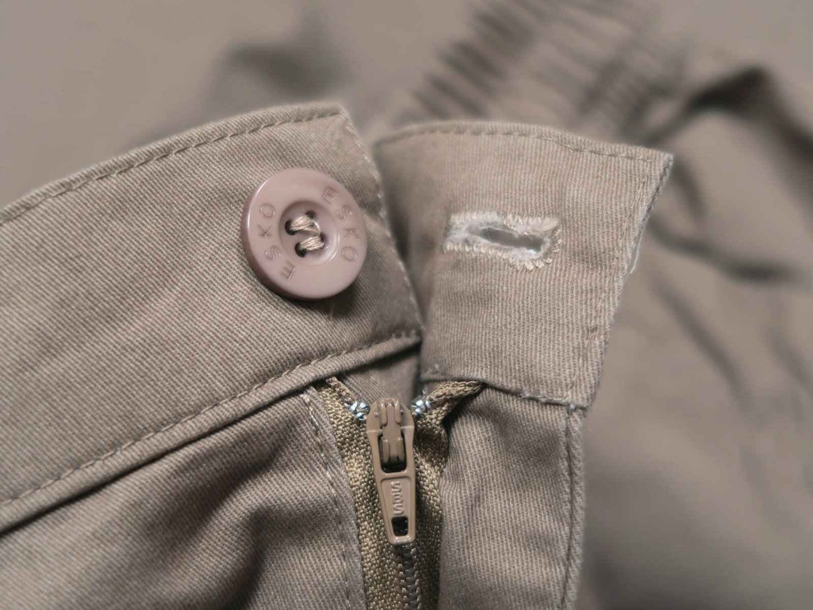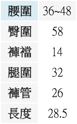 腰圍有皮帶環(褲耳),褲檔有拉鍊。