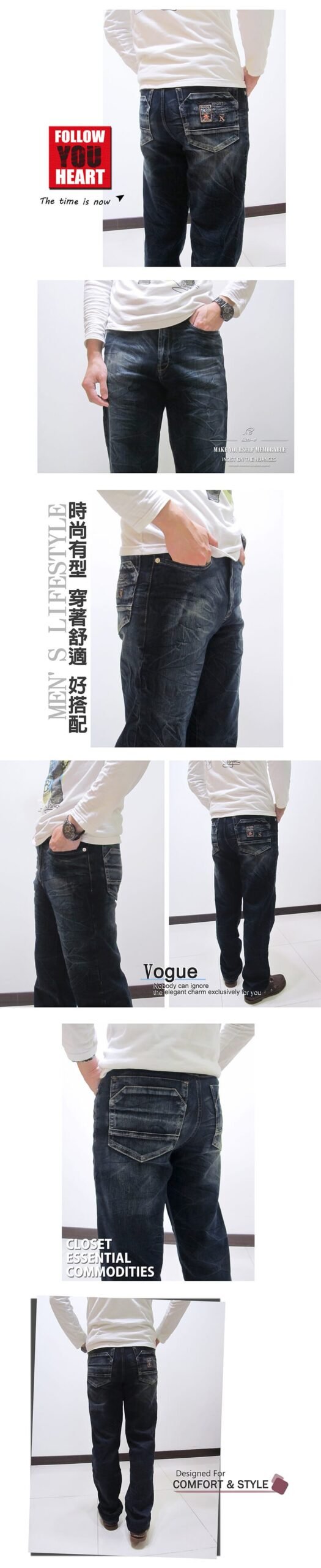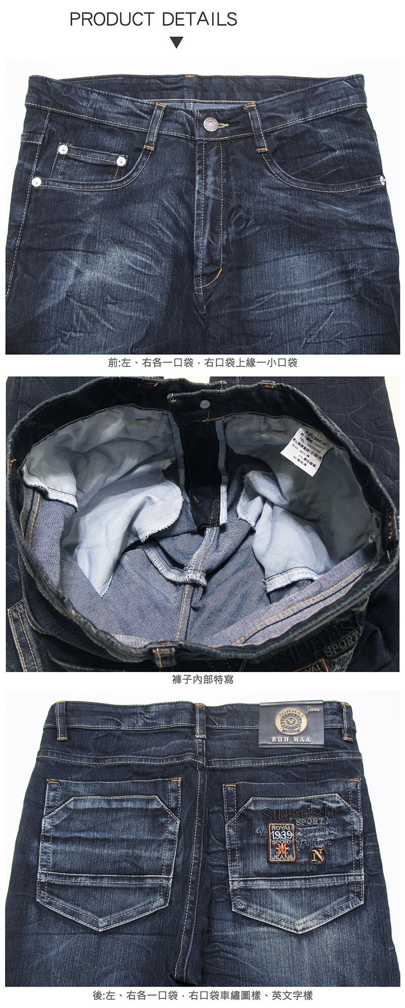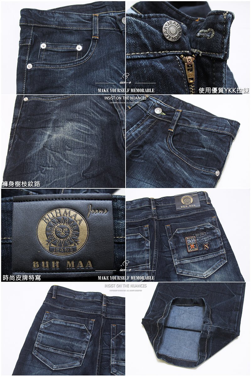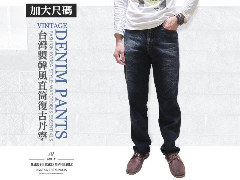 sun-e加大尺碼&一般尺碼台灣製復古丹寧牛仔褲、時尚韓風直筒牛仔褲、後車繡口袋牛仔長褲、樹枝紋牛仔褲、JEANS、DENIM(321-0105-34)深藍色 L XL 2L 3L 4L 5L 腰圍:30~41(英吋) [實體店面保障]