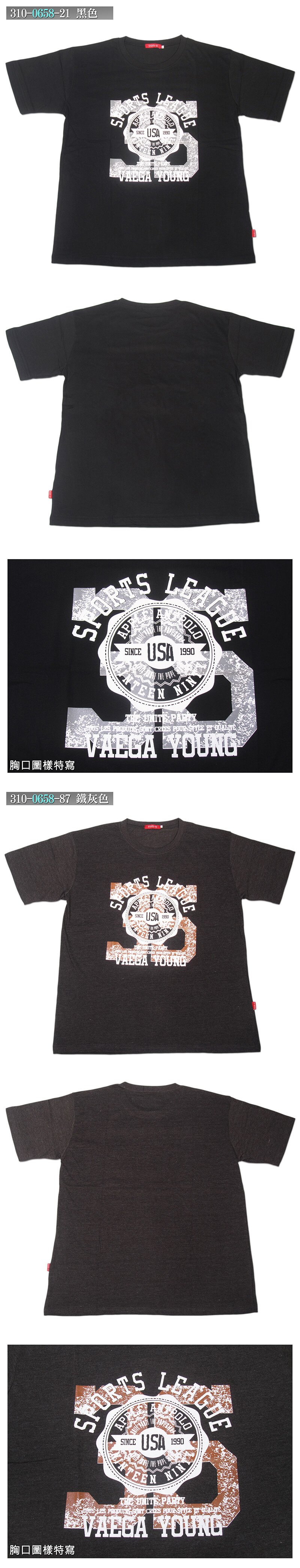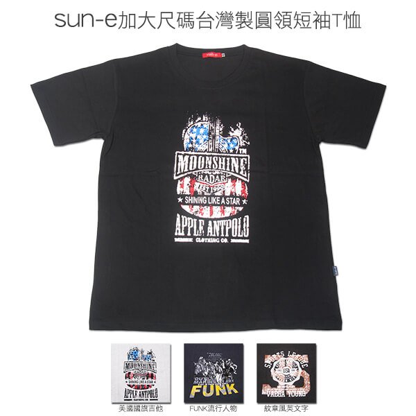 sun-e加大尺碼台灣製短袖T恤、圖案圓領短T、英文字T恤、大尺寸休閒T恤、休閒百搭短T-shirt、潮流短Tee、BIG&TALL、黑色T恤 (310-0653-21)黑色、(310-0653-22)灰色、(310-0655-08)丈青色、(310-0655-21)黑色、(310-0658-21)黑色、(310-0658-87)鐵灰色 尺寸:4L 5L 7L(胸圍:50~63英吋) [實體店面保障]