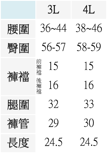3L (腰圍:36~44英吋), 4L (腰圍:38~46英吋)