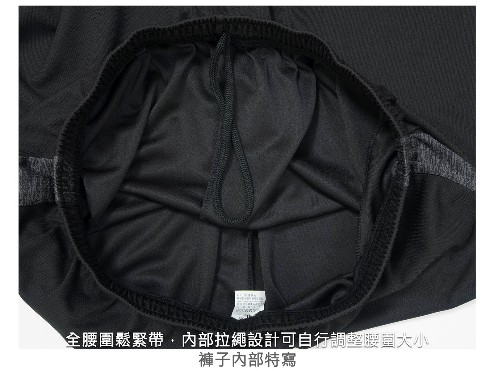 全腰圍鬆緊帶,內部拉繩設計,可自行調整腰圍大小。
