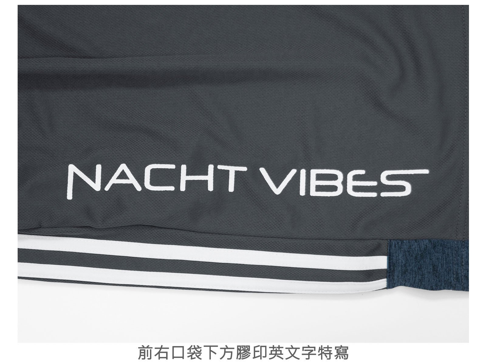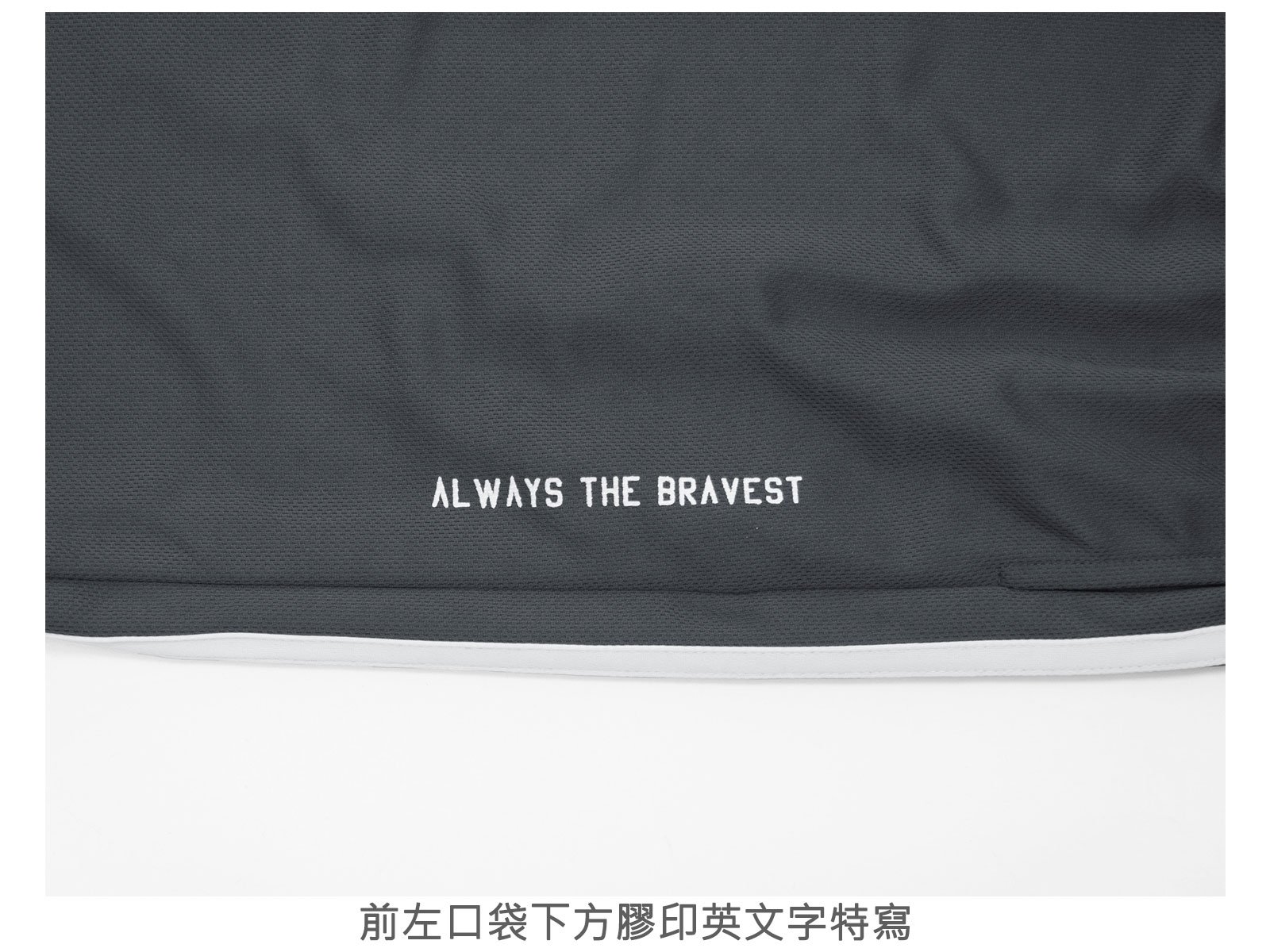 前:左、右各一口袋,口袋下方分別膠印英文字。