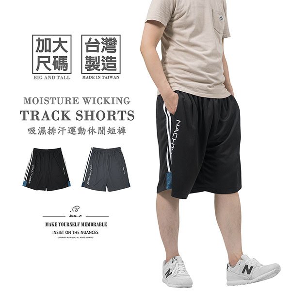 加大尺碼台灣製運動休閒短褲,吸濕排汗機能布料,