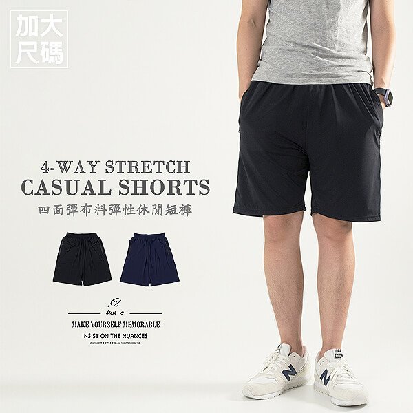 加大尺碼四面彈短褲,彈力布料可四面拉伸,