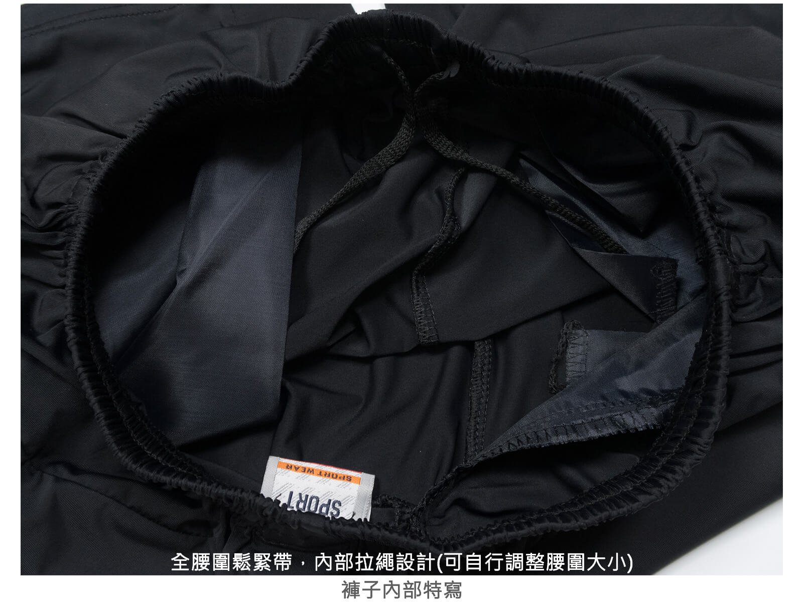 全腰圍鬆緊帶,內部拉繩設計(可自行調整腰圍大小)。