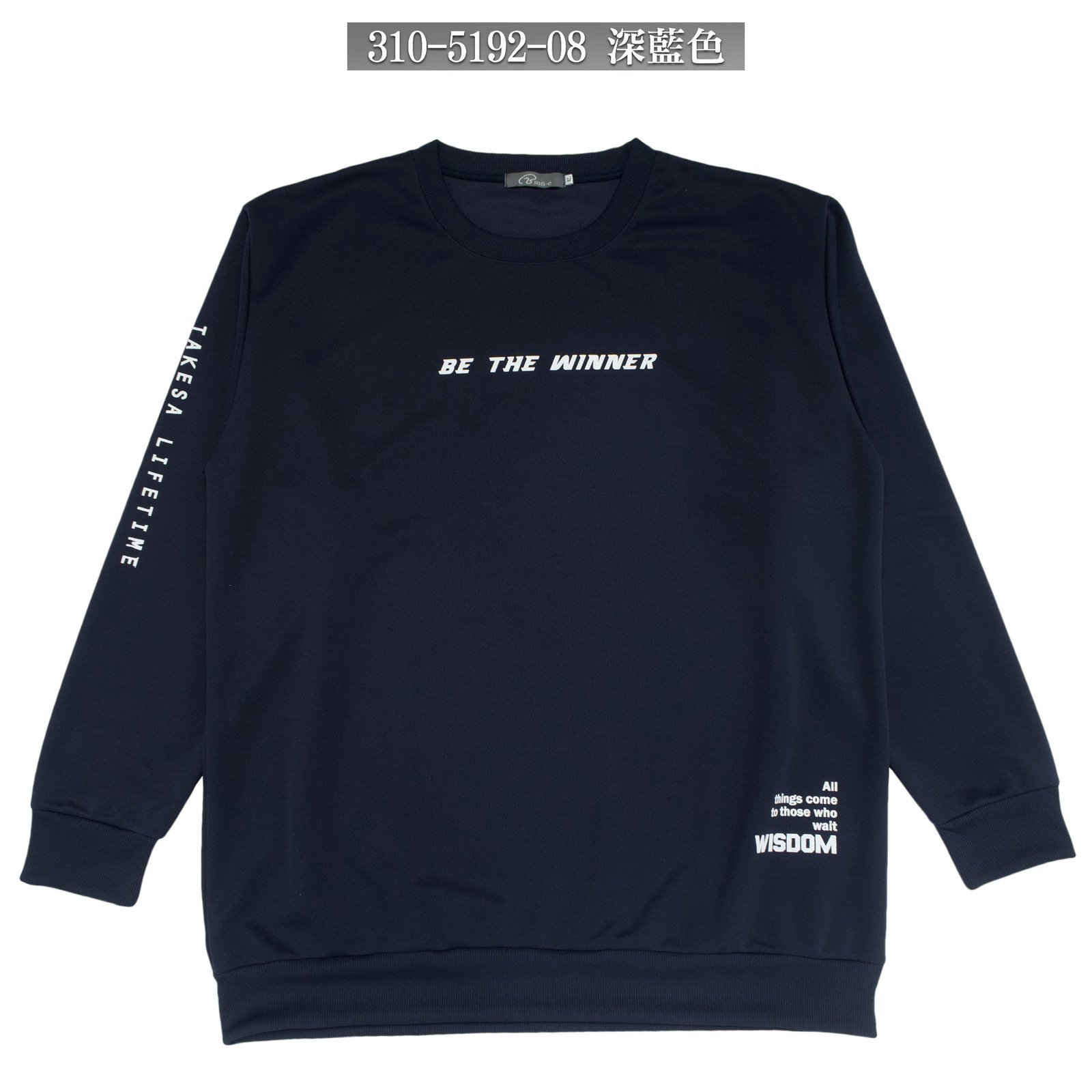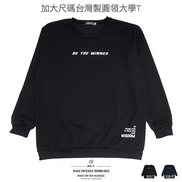 sun-e加大尺碼大學T、台灣製長袖T恤、英文字T恤、圓領T恤、長袖上衣、黑色T恤、羅紋布袖口下擺長Tee、Big Amd Tall Sweatshirts、Made In Taiwan T-shirts、Long Sleeve T-shirts、Crew Neck T-Shirts、Lettering T-Shirts  (310-5192-08)深藍色、(310-5192-21)黑色 4L 5L (胸圍:52~55英吋 / 132~140公分) 男 [實體店面保障]