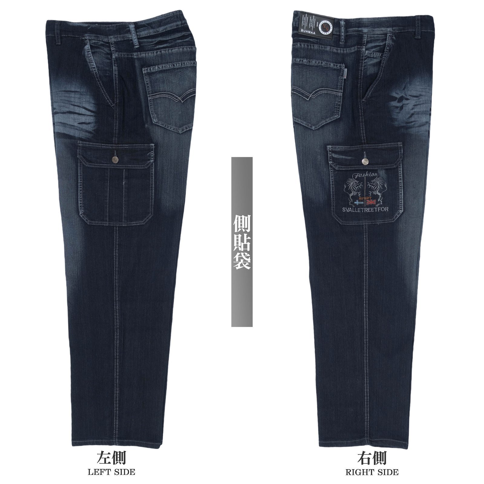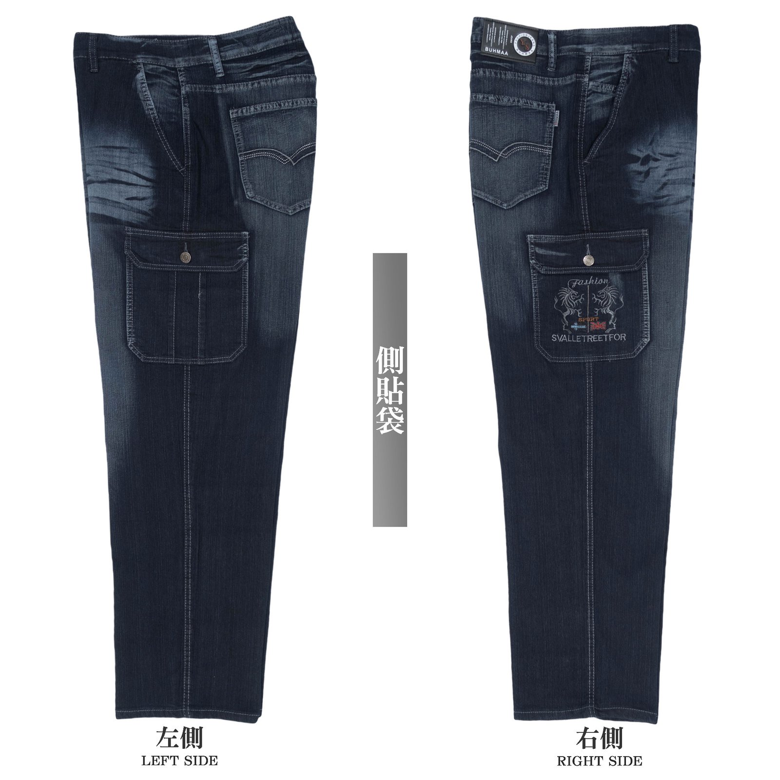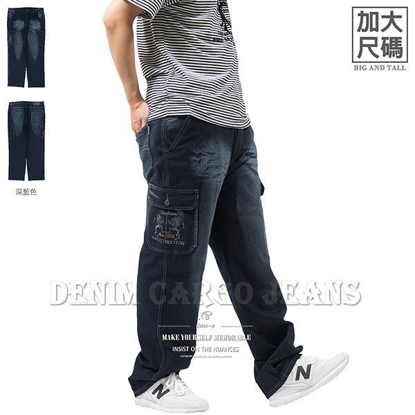 sun-e加大尺碼工作褲、大尺碼牛仔褲、牛仔工作褲、丹寧側袋褲、中直筒牛仔褲、工裝褲、彈性牛仔長褲、多口袋工作長褲、直筒褲、大尺碼長褲、大尺碼男裝、刷白牛仔褲、側貼袋長褲、口袋褲、車繡後口袋、Big And Tall Jeans、Cargo Jeans、Denim Cargo Pants、Regular Fit Jeans、Stretch Jeans、Embroidered Pockets (321-0111-08)深藍色 腰圍:40~46英吋 (102~117公分) 男 [實體店面保障]