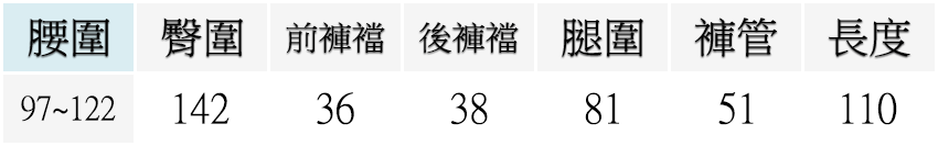 腰圍有皮帶環(褲耳),褲檔有拉鍊。