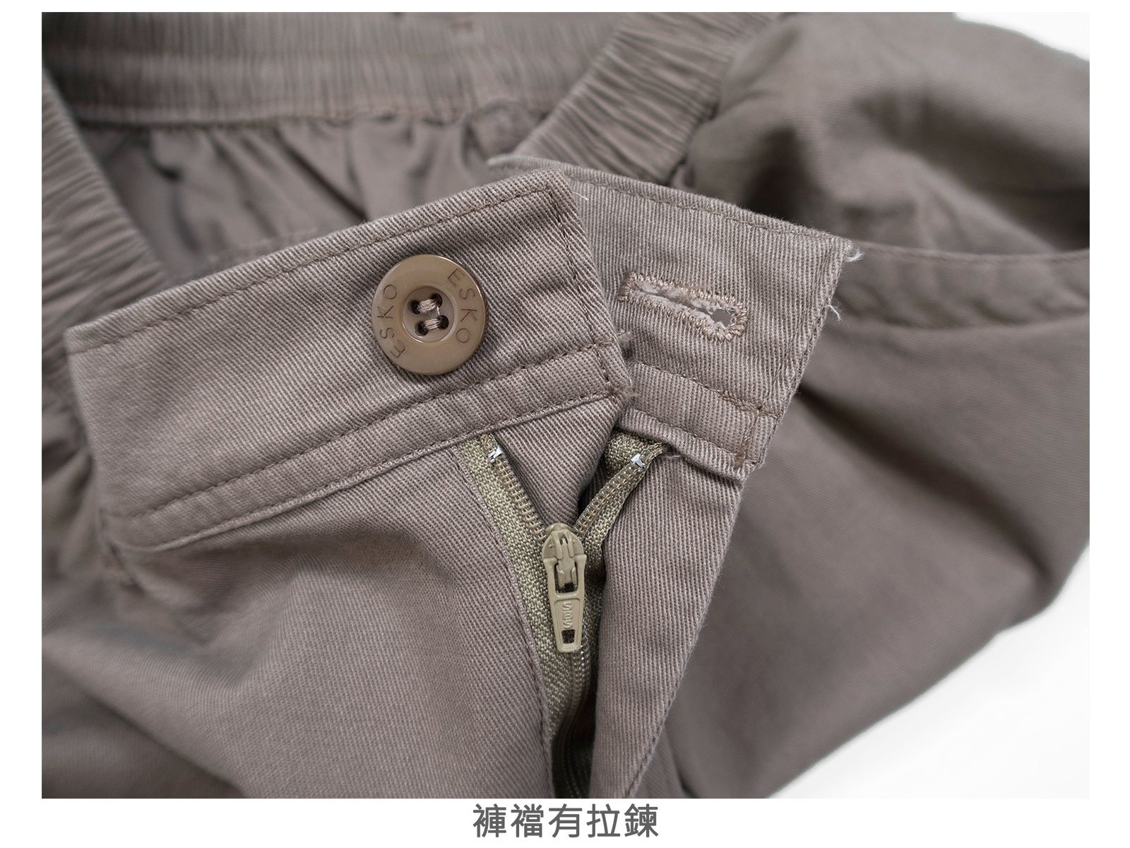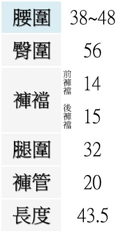 腰圍有皮帶環(褲耳),褲檔有拉鍊。