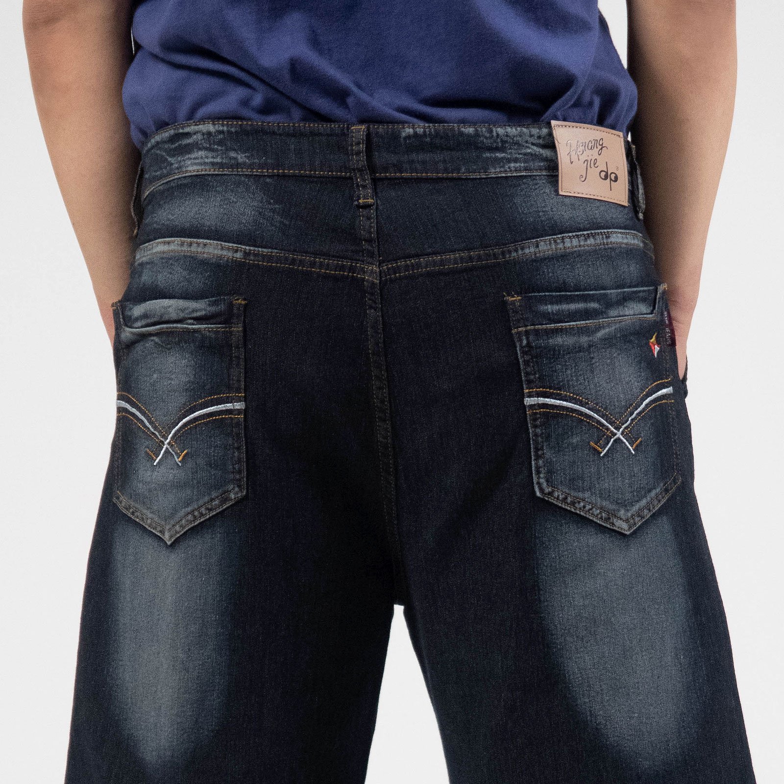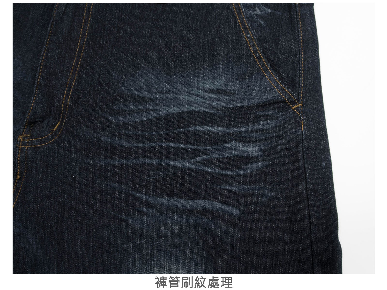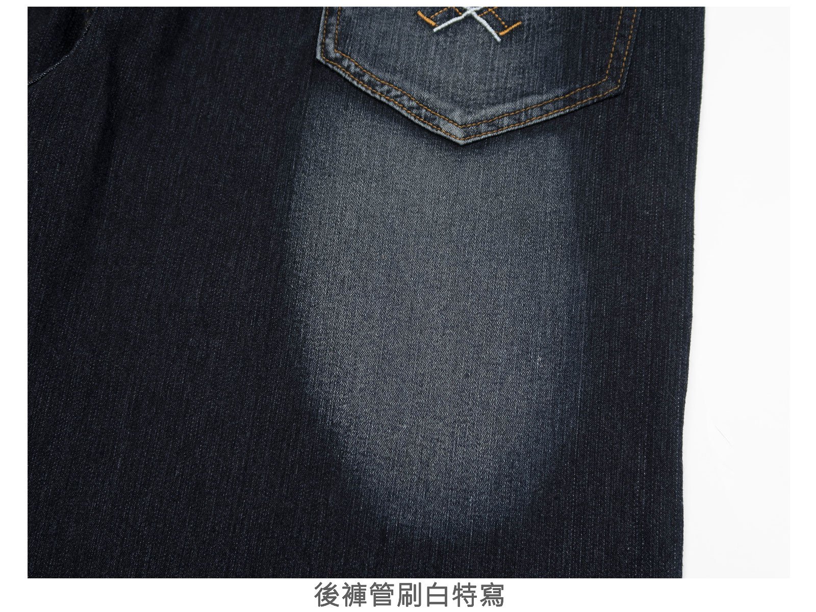 褲身刷白、刷紋處理,伸縮有彈性。