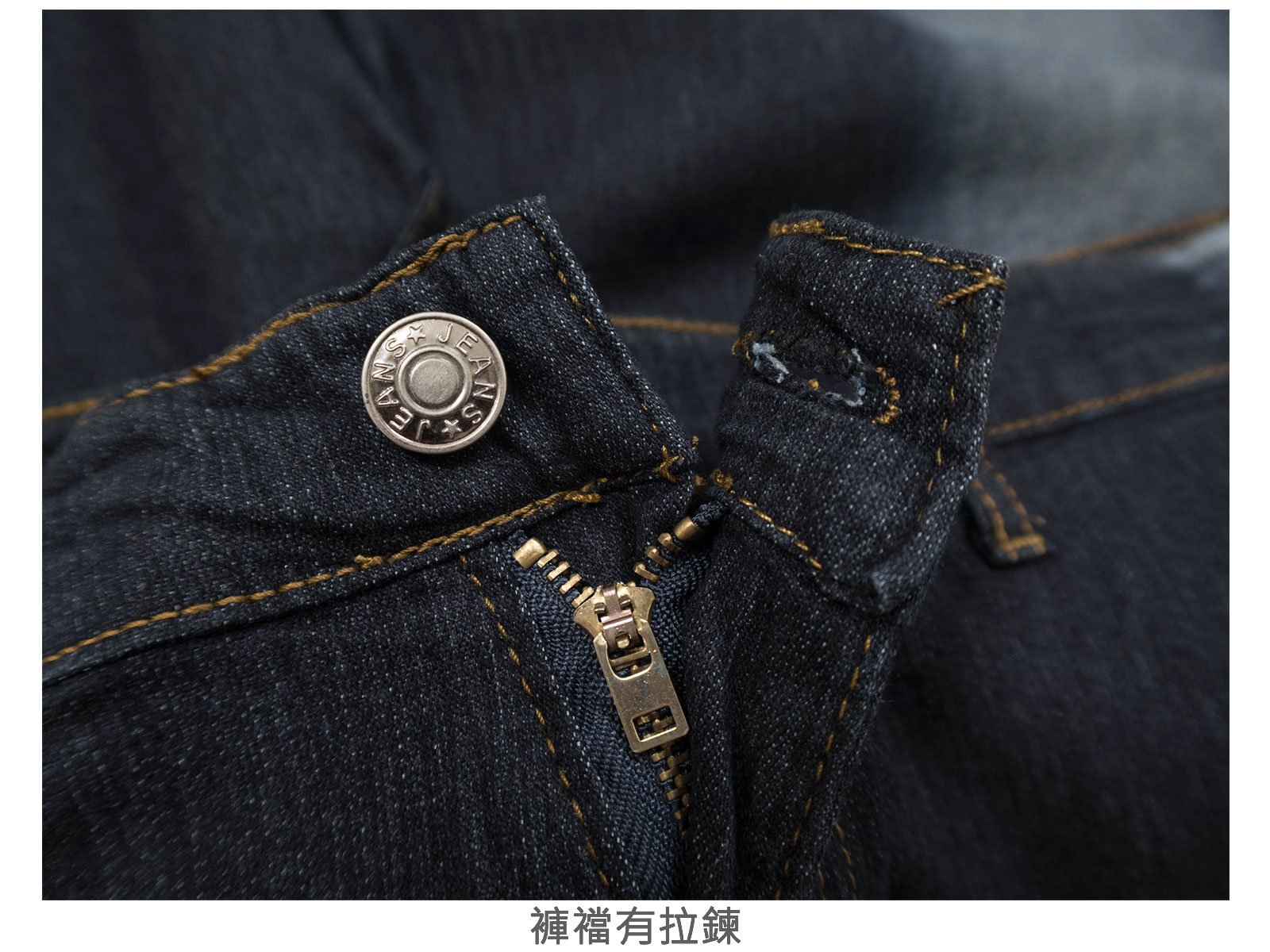 腰圍有皮帶環(褲耳)、褲檔有拉鍊。