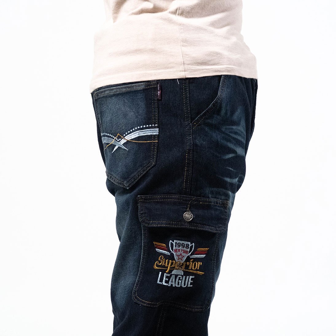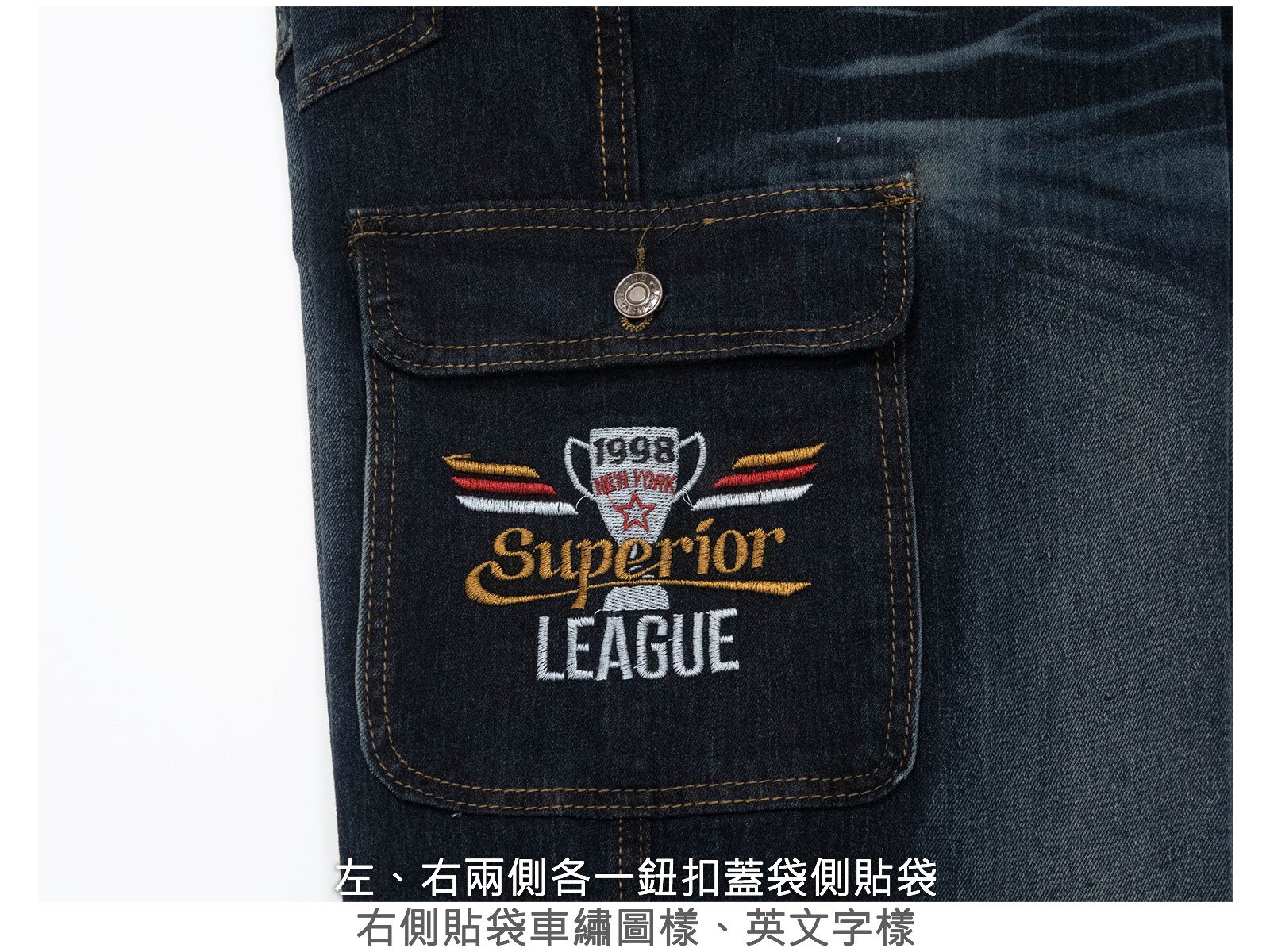 sun-e加大尺碼牛仔工作褲、大尺碼牛仔褲、丹寧側袋褲、中直筒牛仔褲、工裝褲、彈性牛仔長褲、刷紋丹寧工作長褲、刷色直筒褲、大尺碼長褲、大尺碼男裝、側貼袋刷白牛仔褲、多口袋褲、車繡後口袋、Big And Tall Jeans、Cargo Jeans、Denim Cargo Pants、Regular Fit Jeans、Denim Pants、Men’s Jeans、Stretch Jeans、Embroidered Pockets (307-7466-21)深牛仔 腰圍:42~50英吋 (107~127公分) 男 [實體店面保障]