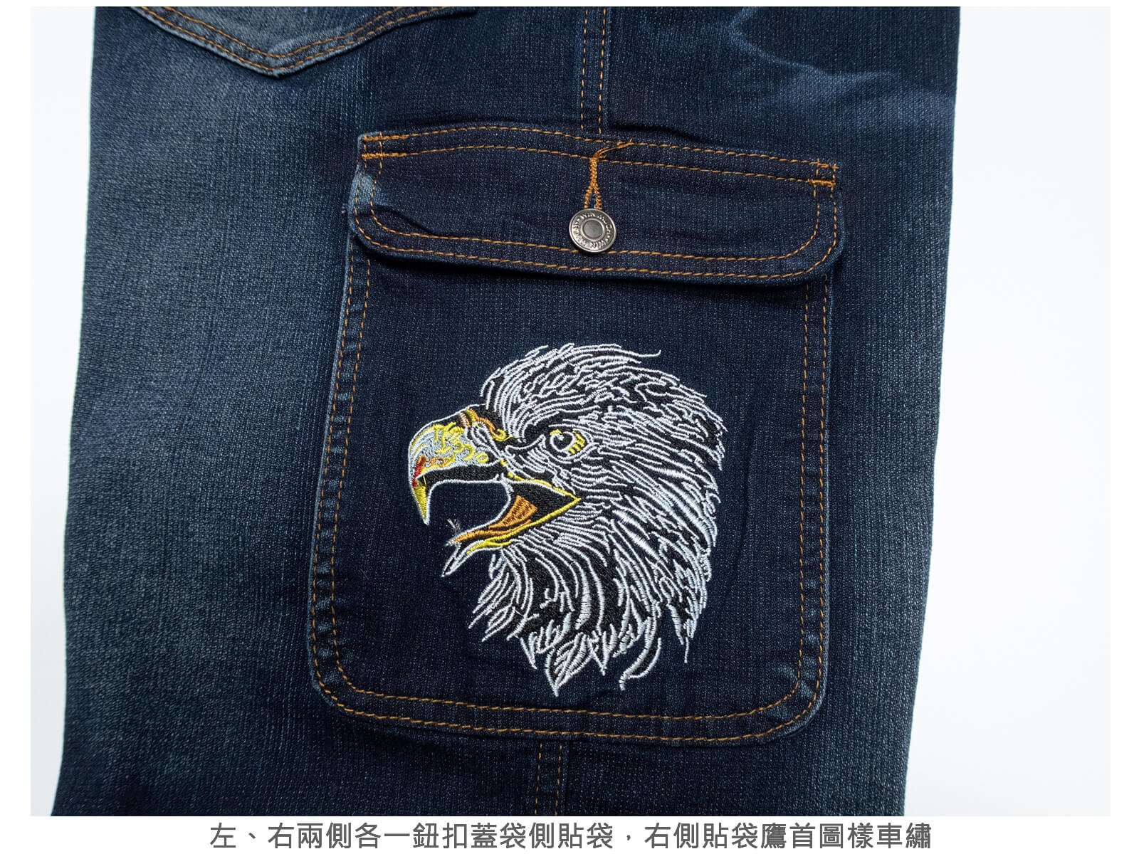右側貼袋鷹首圖樣車繡。