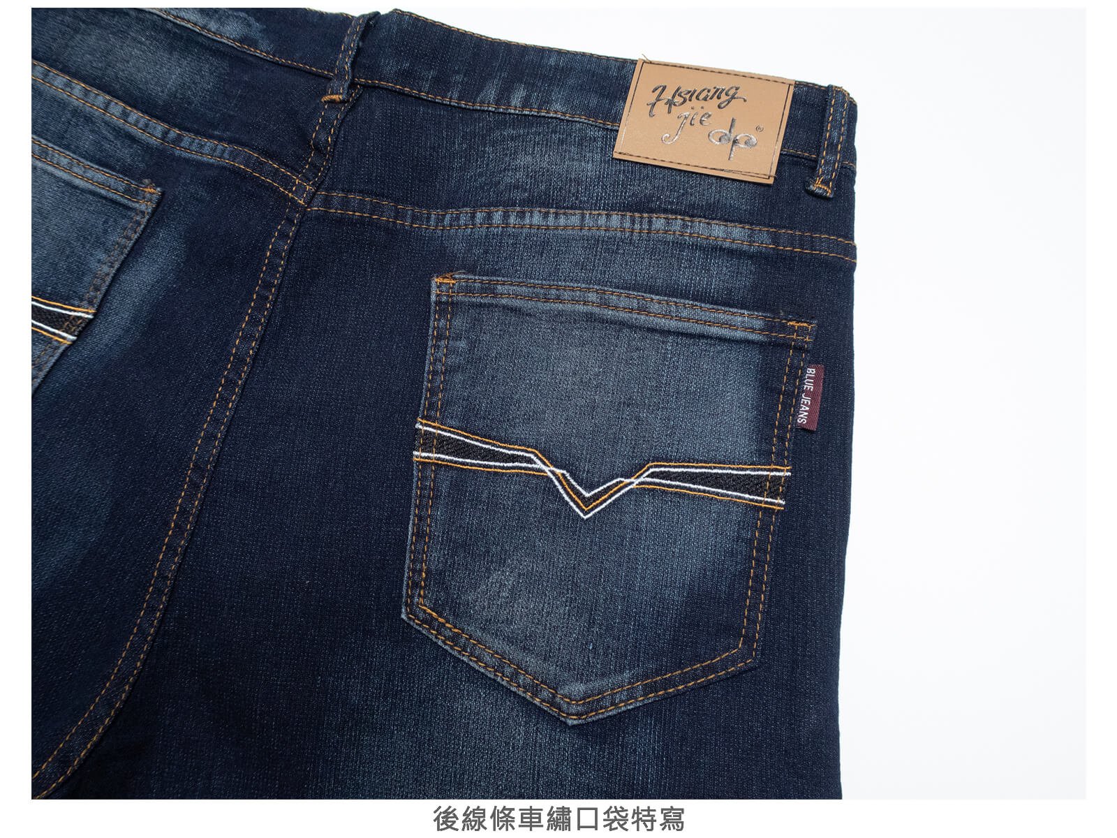 後:左、右各一線條車繡口袋。