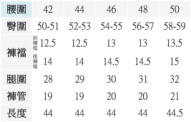 ▍尺寸表 Size Chart