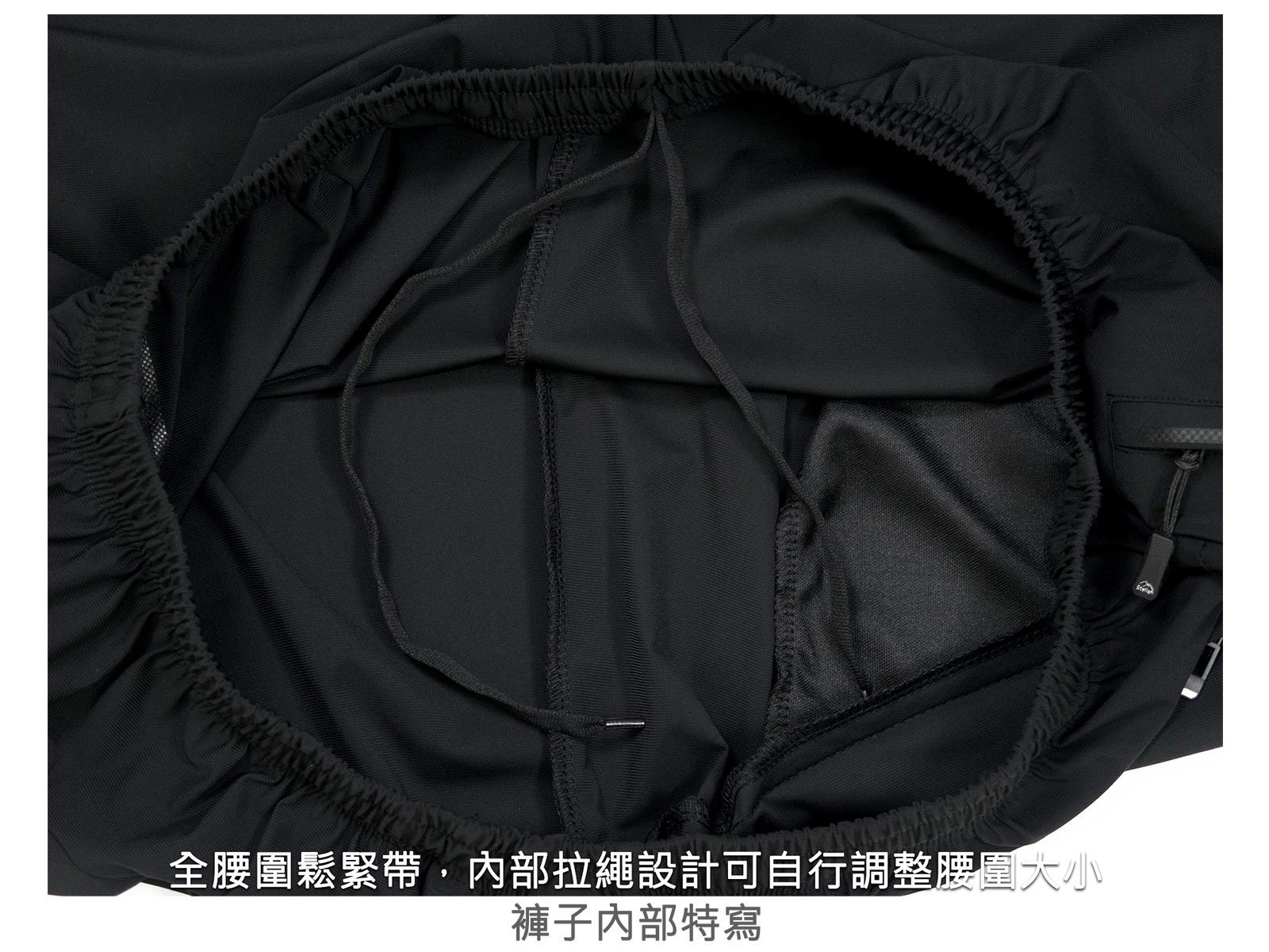 全腰圍鬆緊帶,內部拉繩設計,可自行調整腰圍大小。