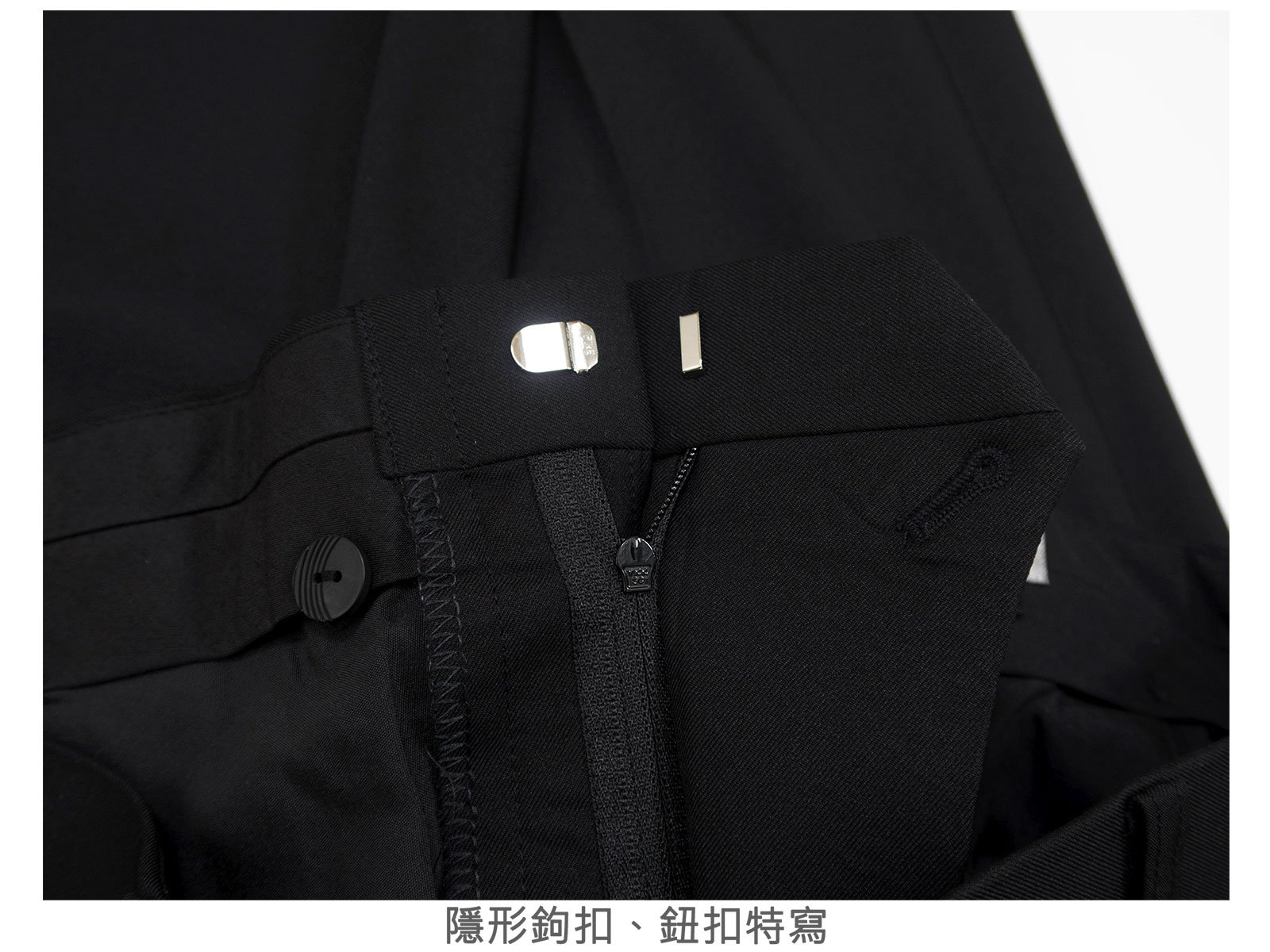 腰圍有皮帶環(褲耳),隱形鉤扣、鈕扣,